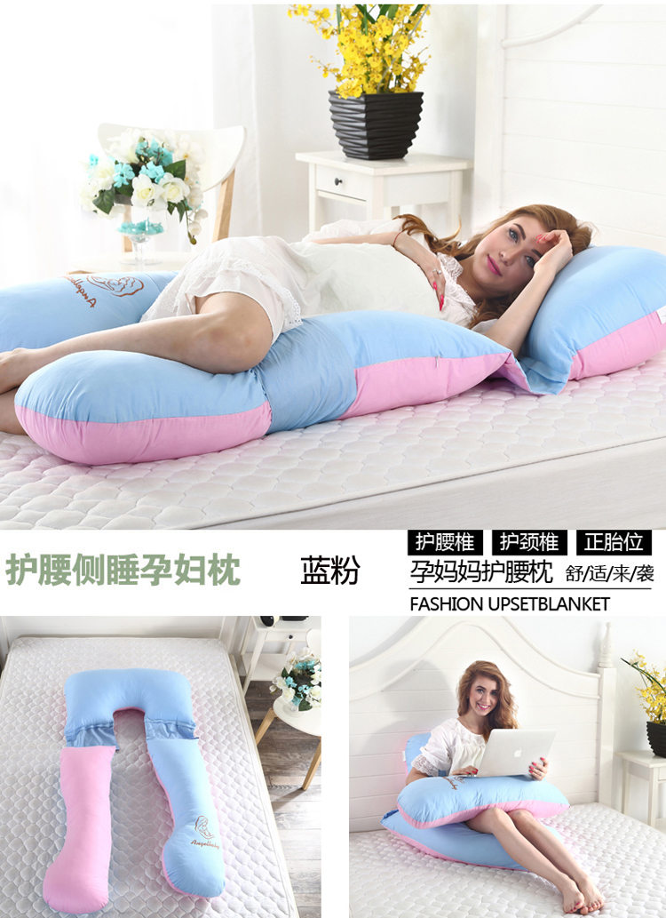 商品名称:浩情国际 133*76全棉+绣花素色绣花可拆卸孕妇枕蓝粉