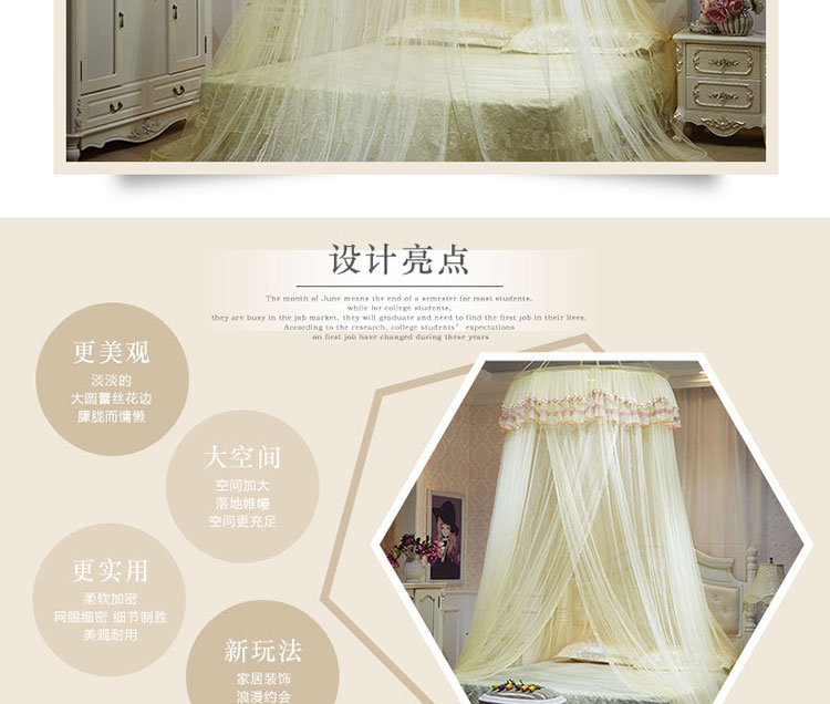 商品名称:冉美家纺 2021新款圆顶蚊帐栀子花米黄色
