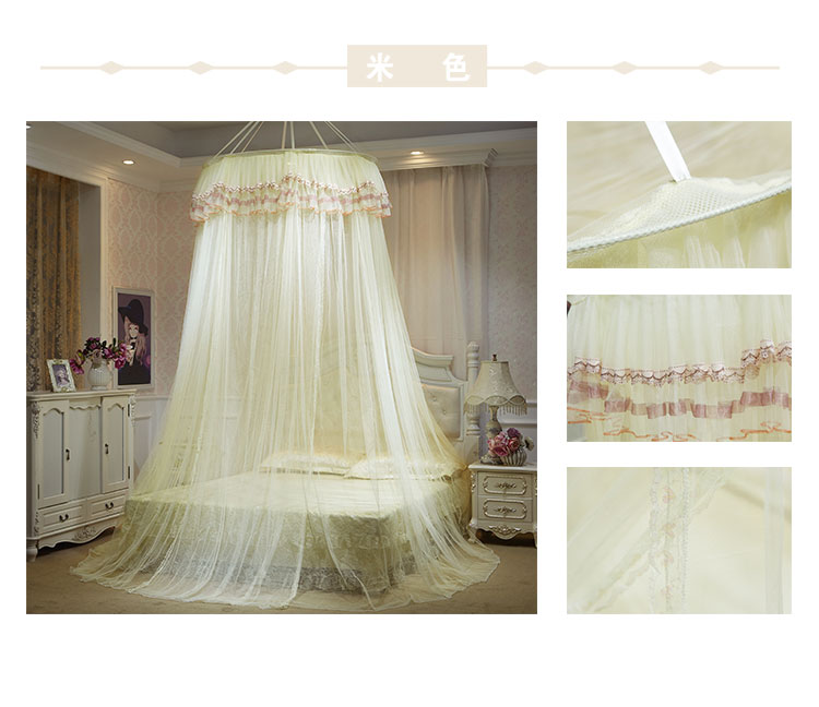 冉美家纺 2021新款圆顶蚊帐栀子花米黄色