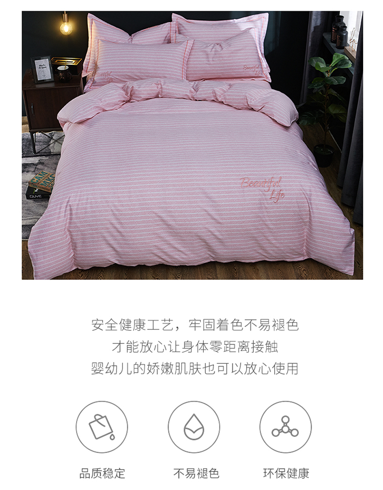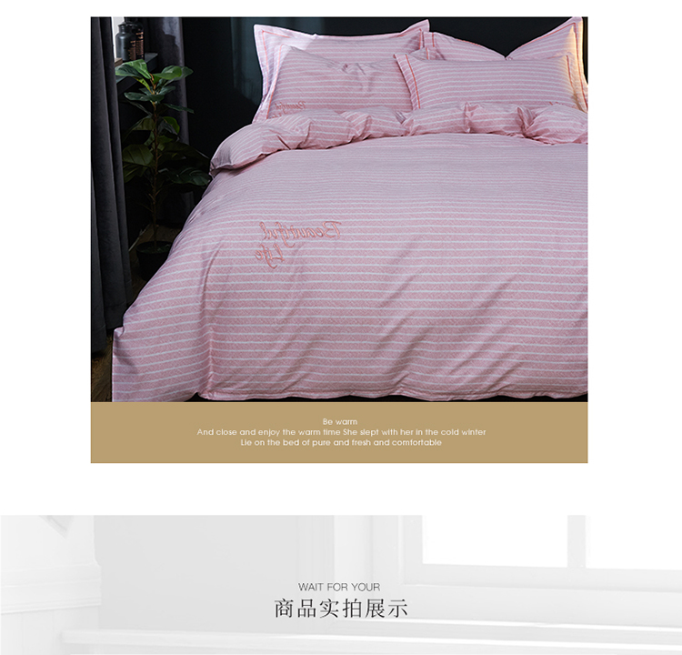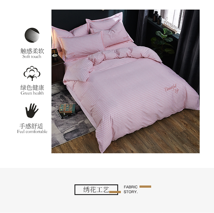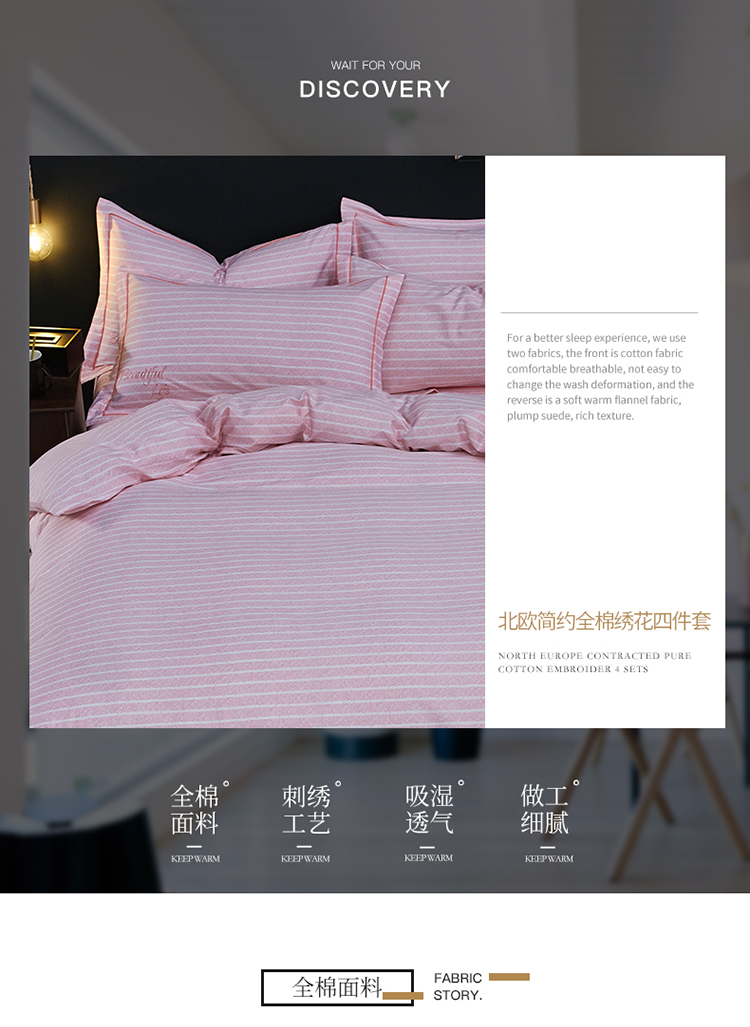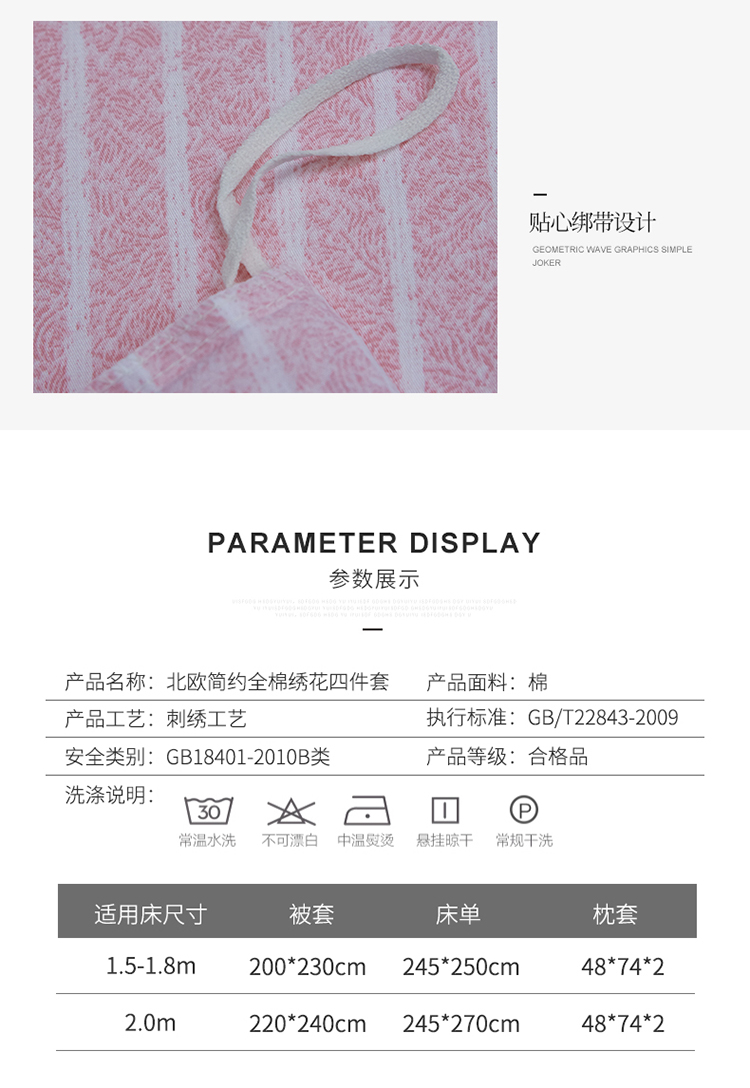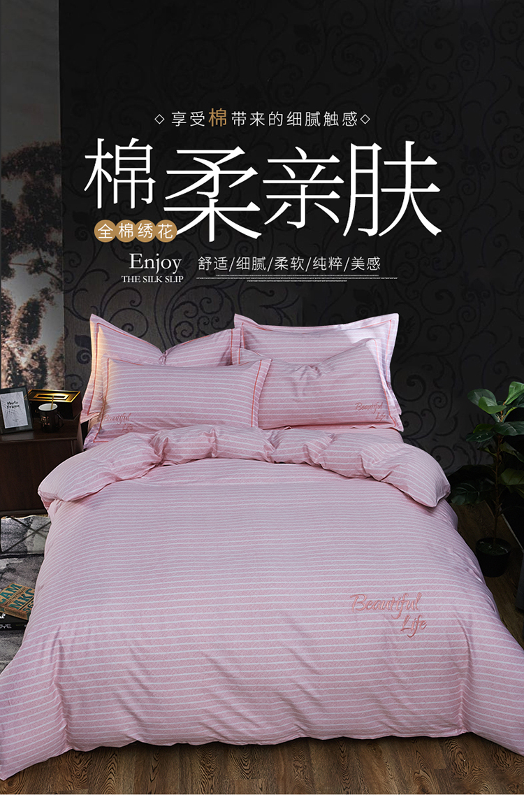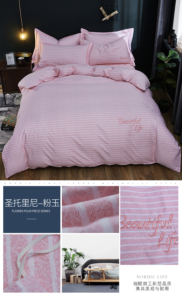 商品名称:雲归梦 北欧简约全棉绣花四件套 圣托里尼-粉玉