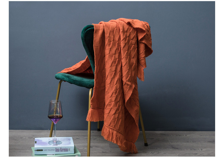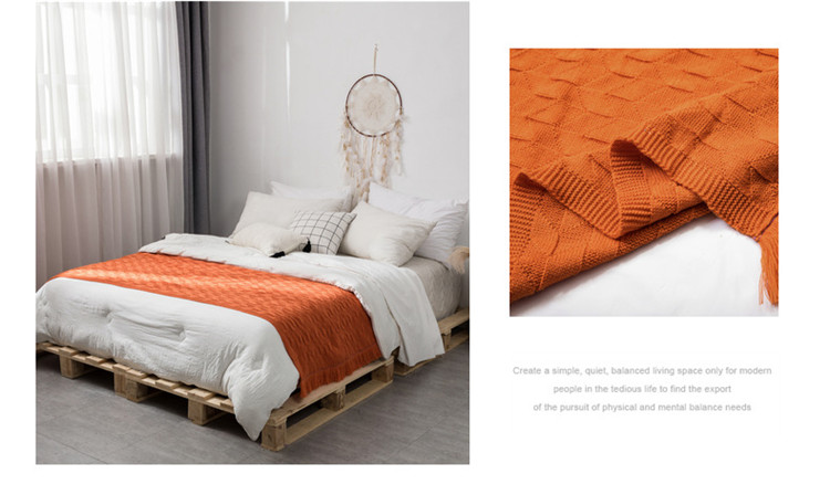 暖绵绵 新品森奇床尾毯针织毯子线毯 橙红