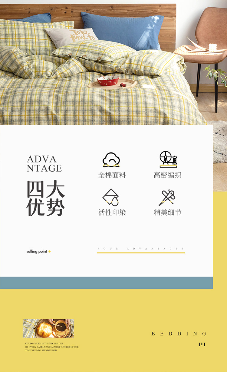 北纬27度 2020新款英伦复古风全棉色织椰子扣四件套艾伦