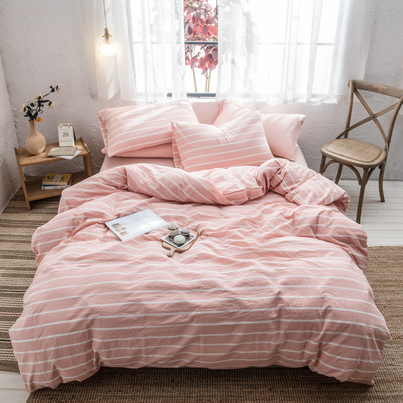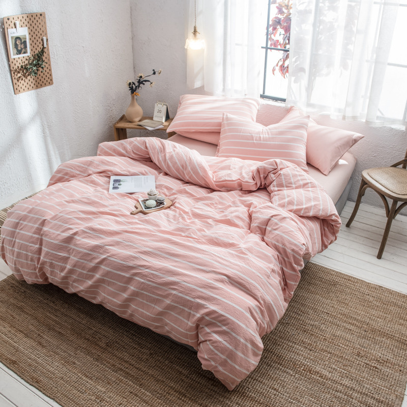 商品名称:佳梦达 2020新款全色织全棉水洗双拼单被套 浅粉白条