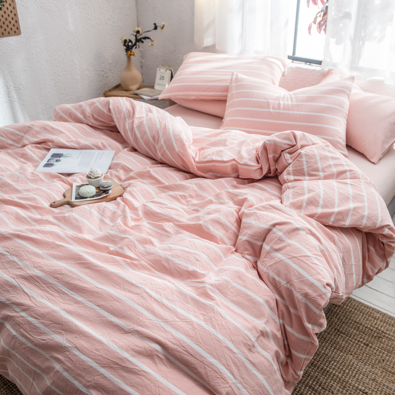 佳梦达 2020新款全色织全棉水洗双拼单被套 浅粉白条