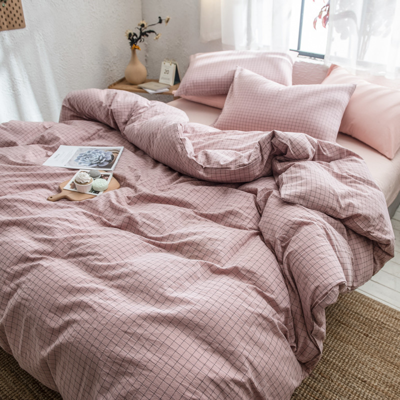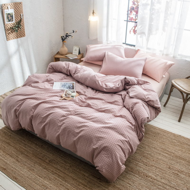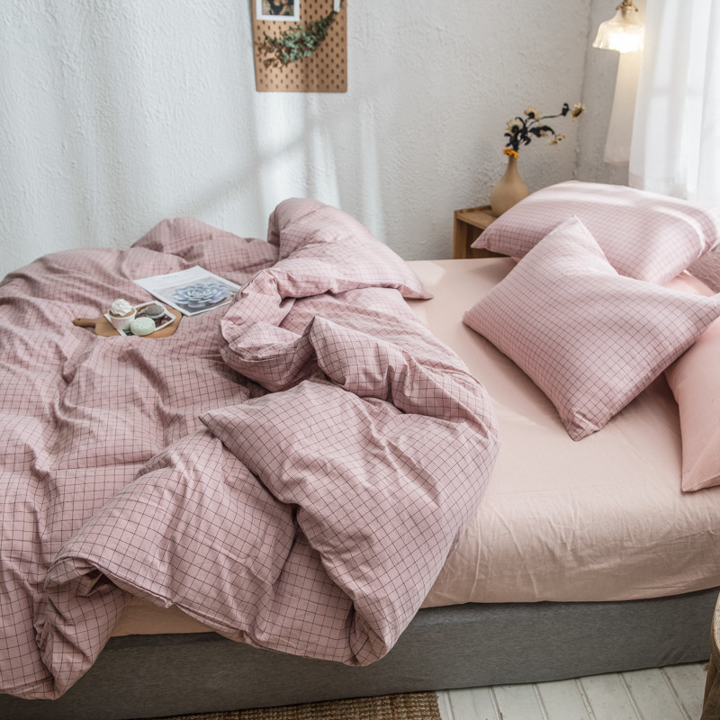 佳梦达 2020新款全色织全棉水洗双拼单床单 粉中格