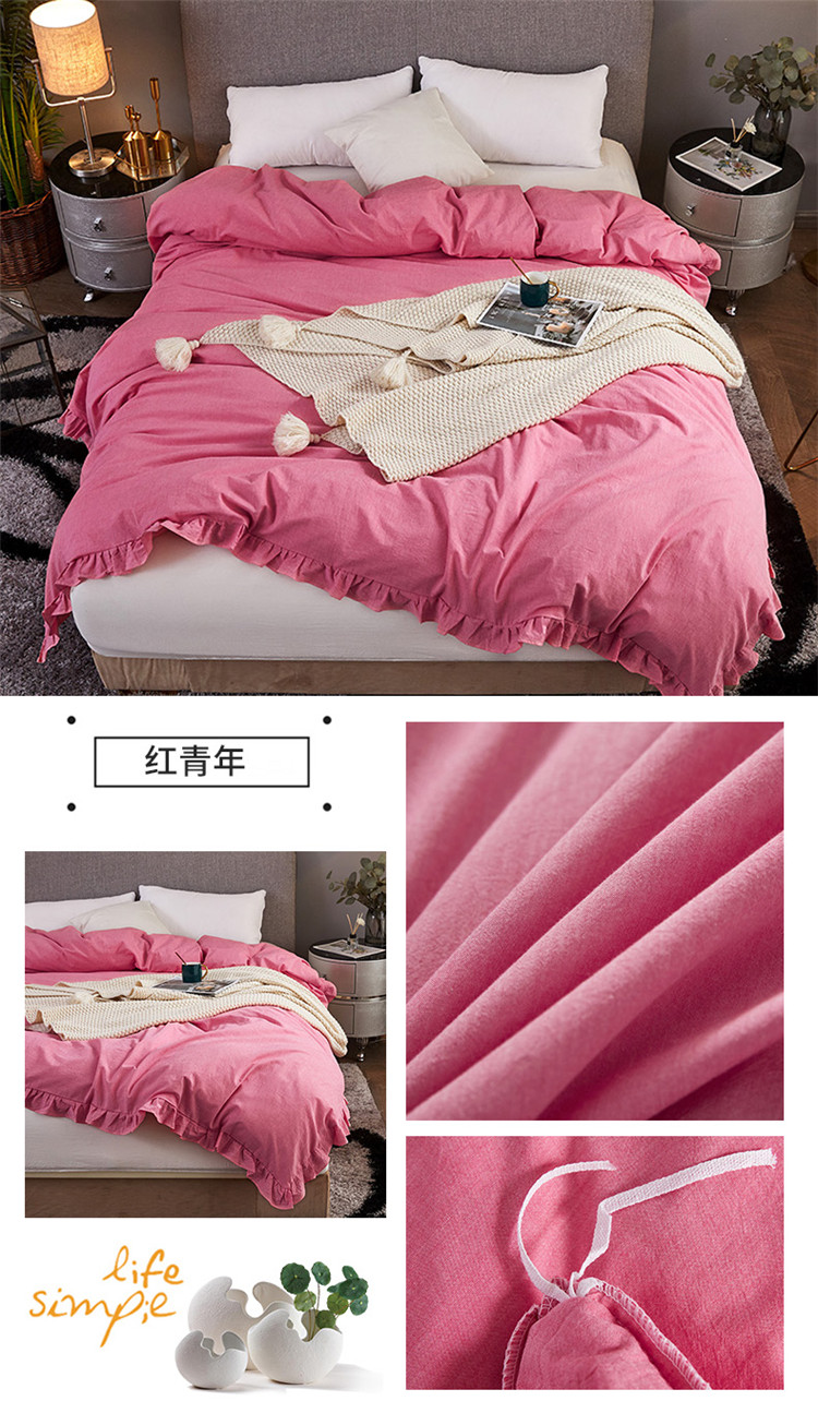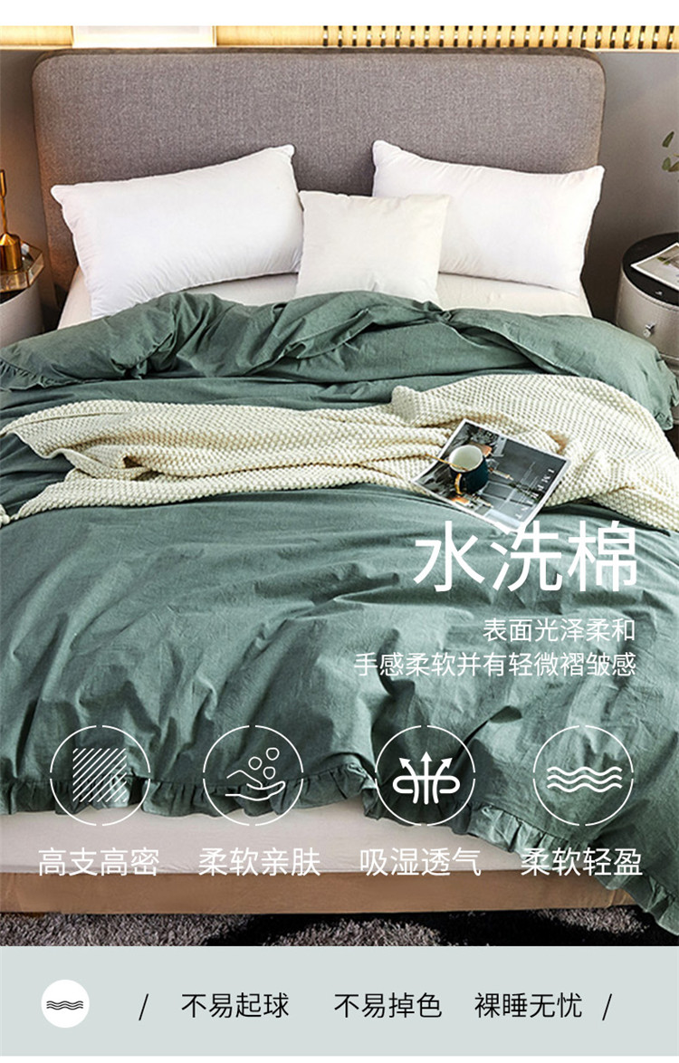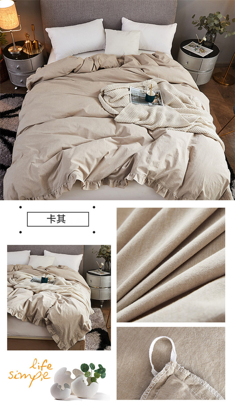 (总)十个点家纺 2020新款全棉色织水洗棉花边被套单件纯棉