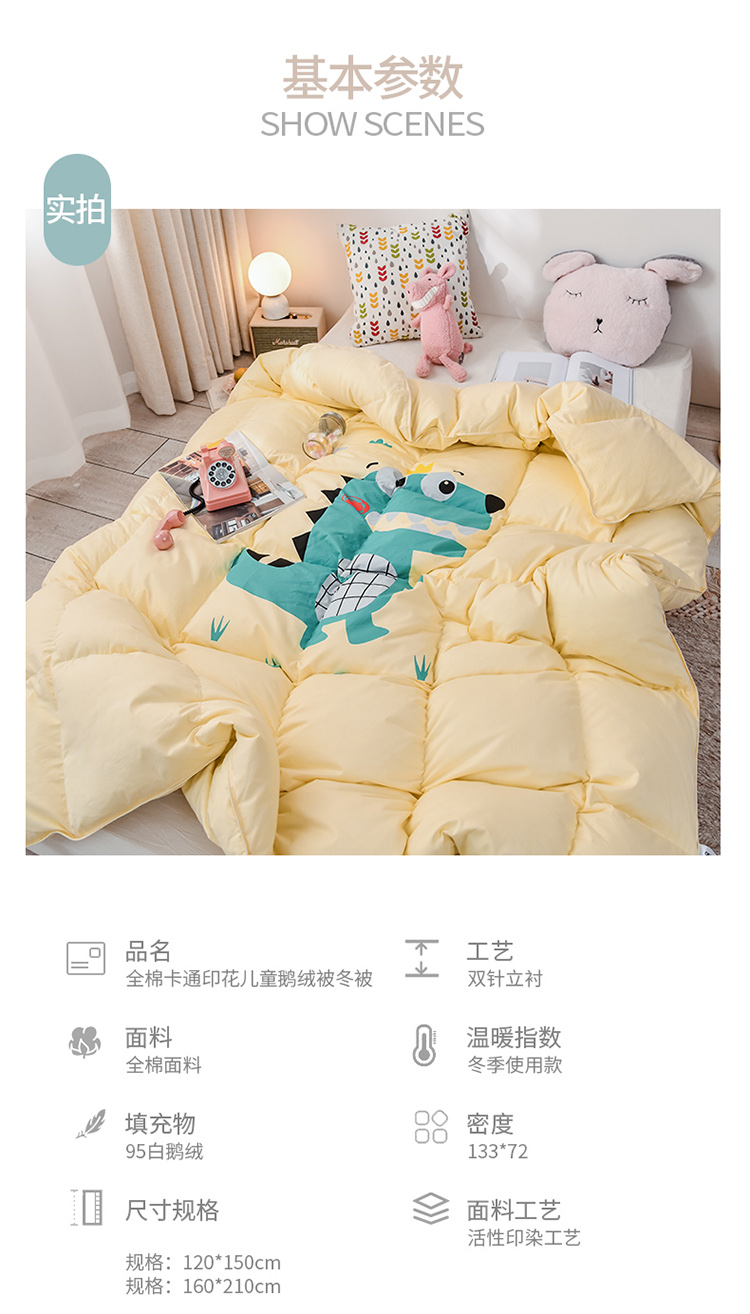 商品名称:绒研羽绒2025全棉卡通印花儿童鹅绒羽绒冬被 鳄鱼先生