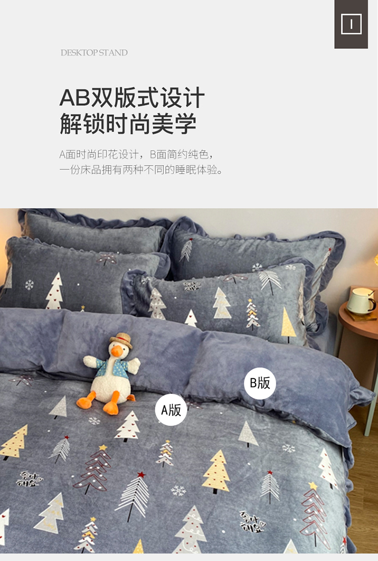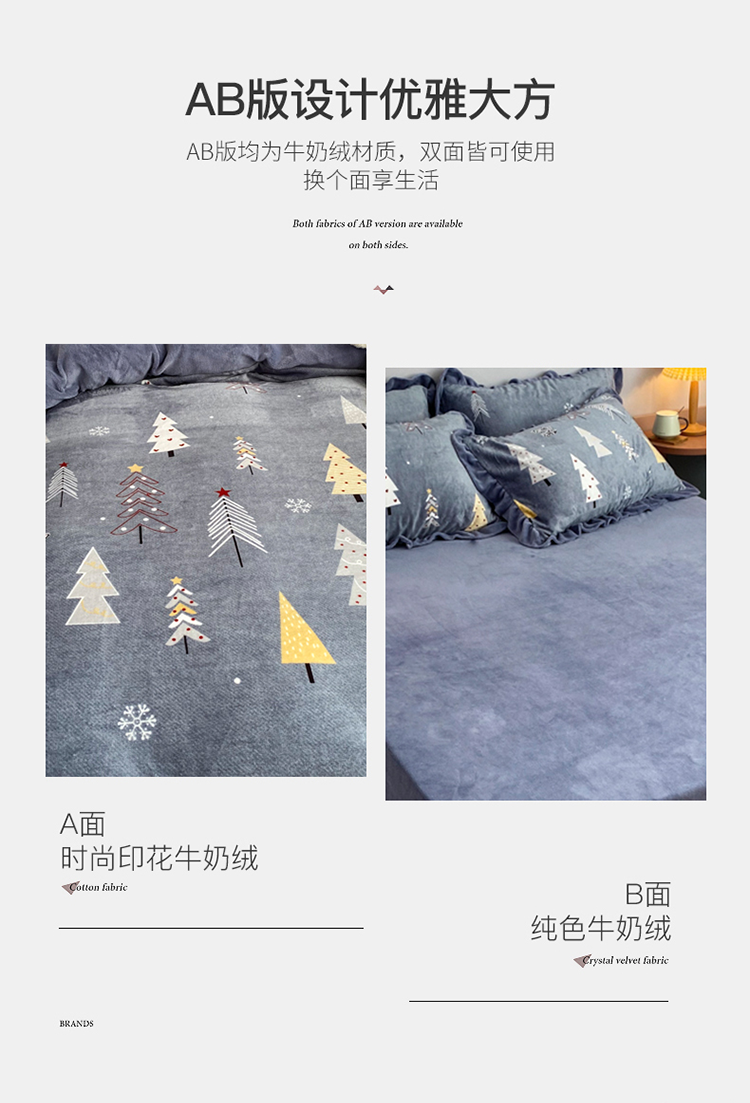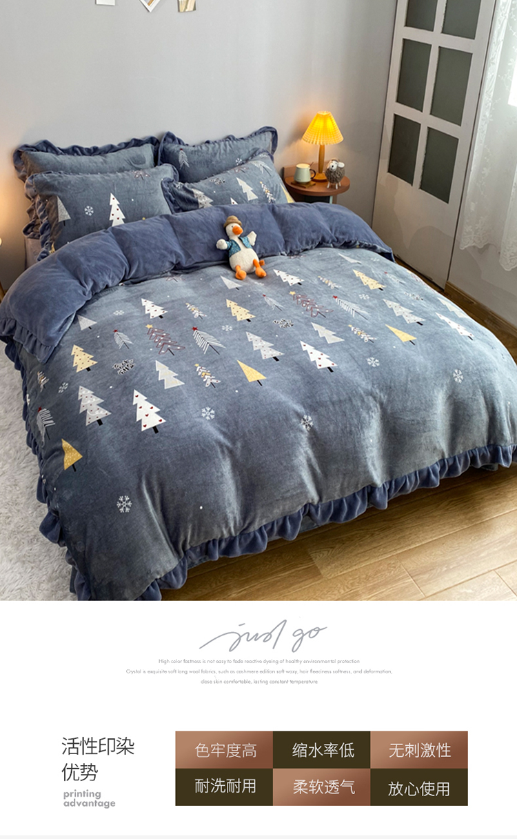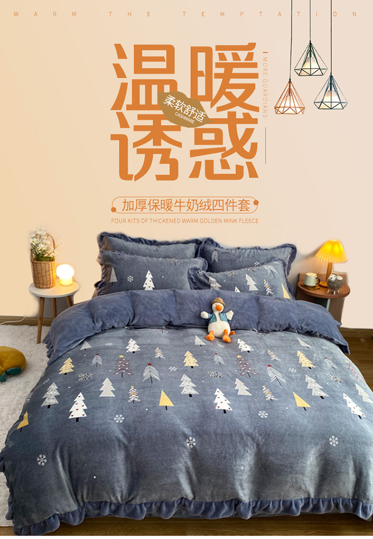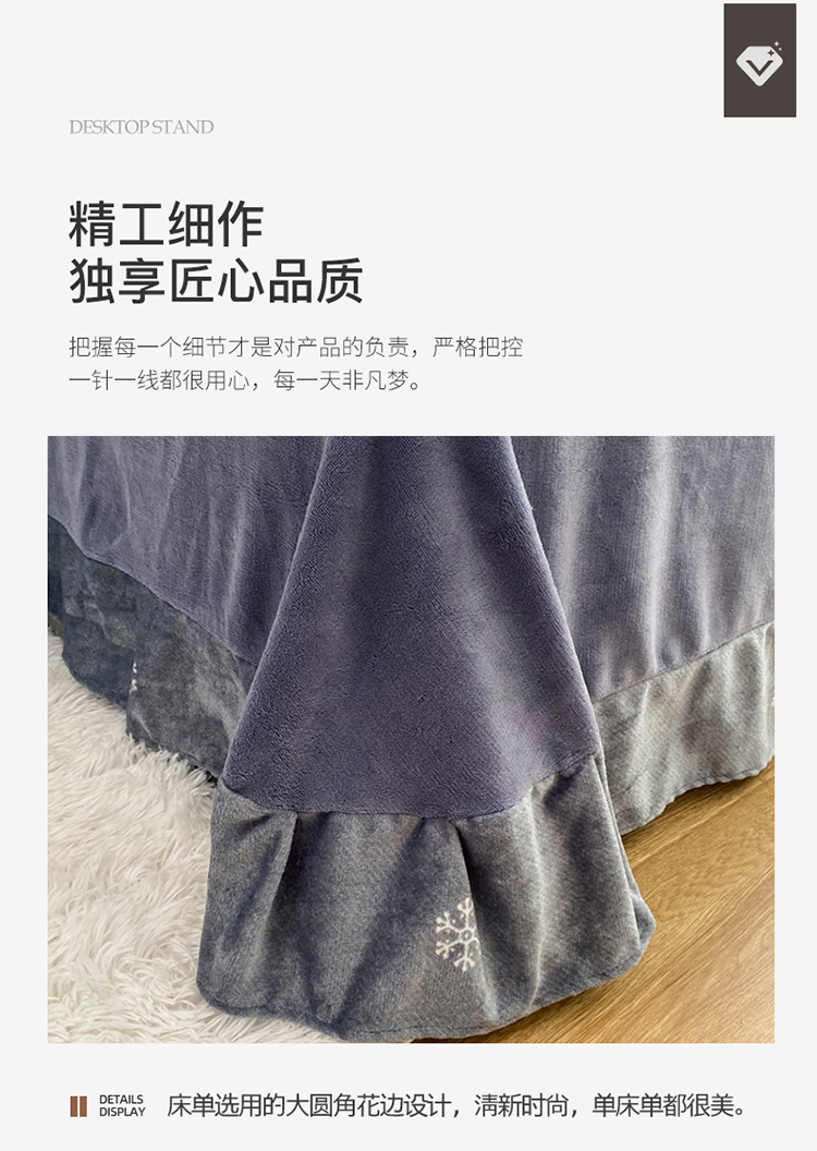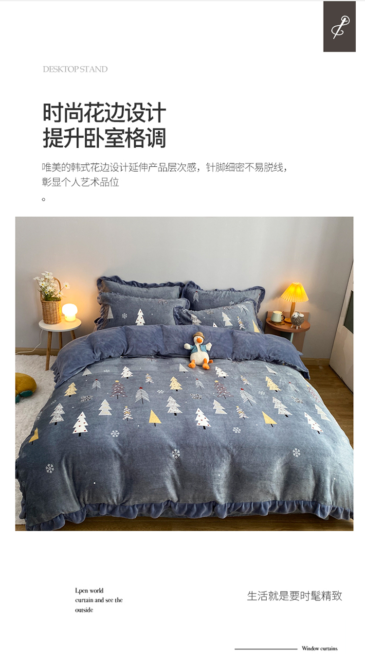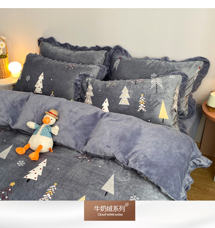商品名称:妖妖家纺 2020新款花边牛奶绒四件套 北岛-灰