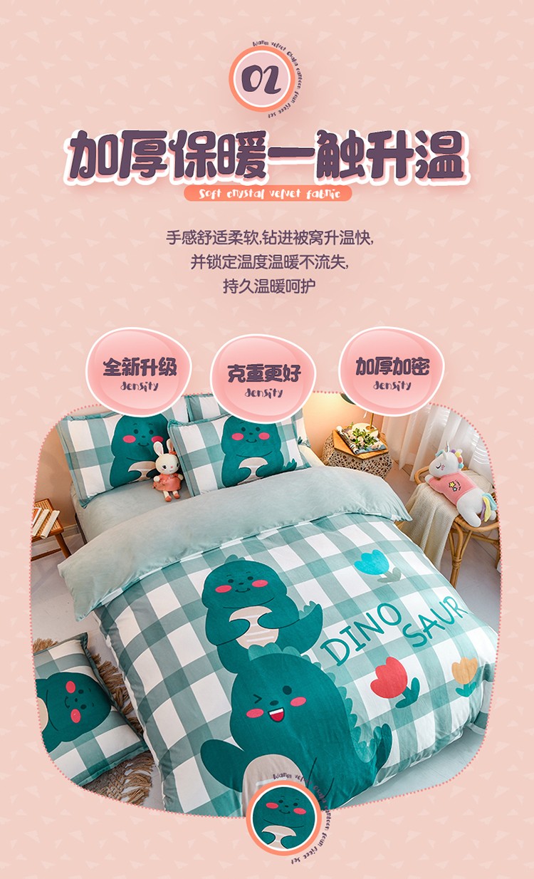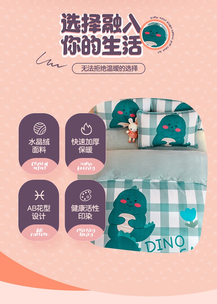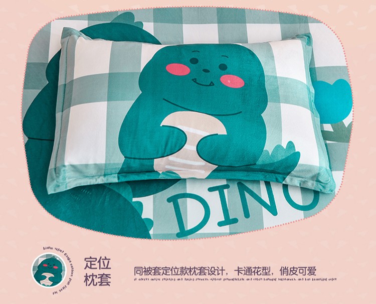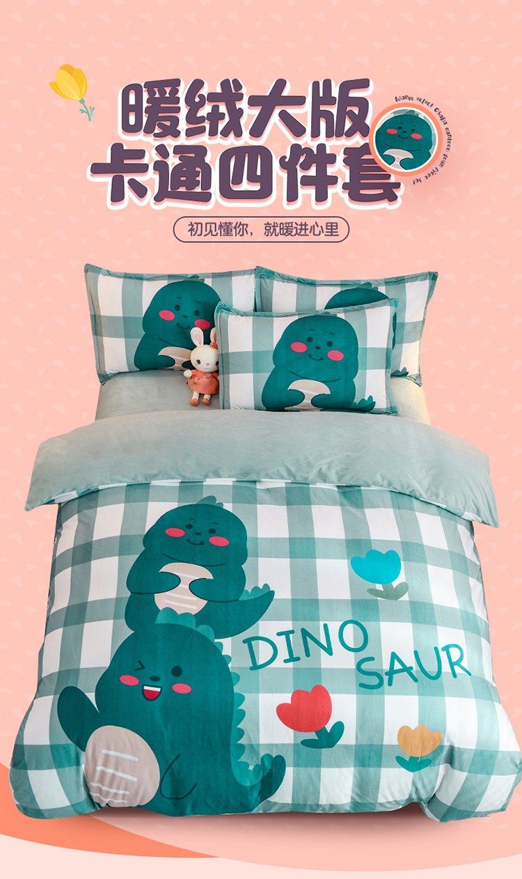 卡初 2020新款秋冬大版宝宝绒牛奶绒四件套玩耍恐龙