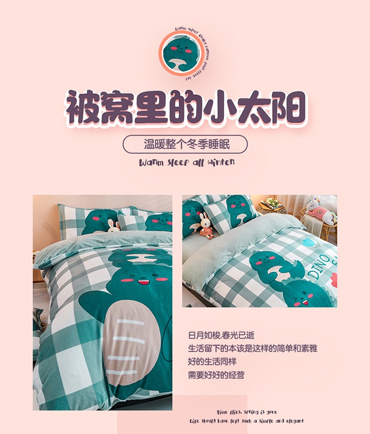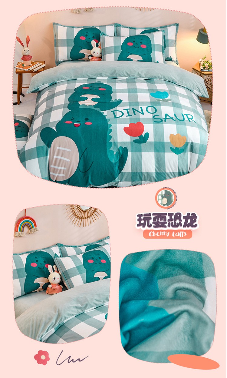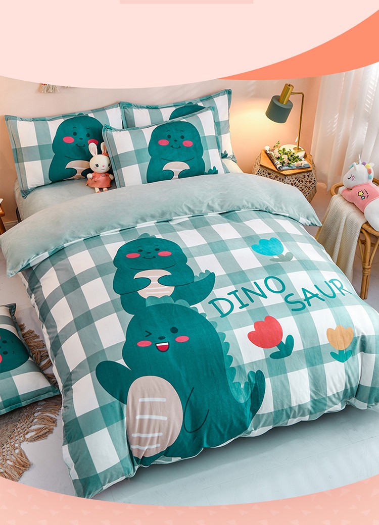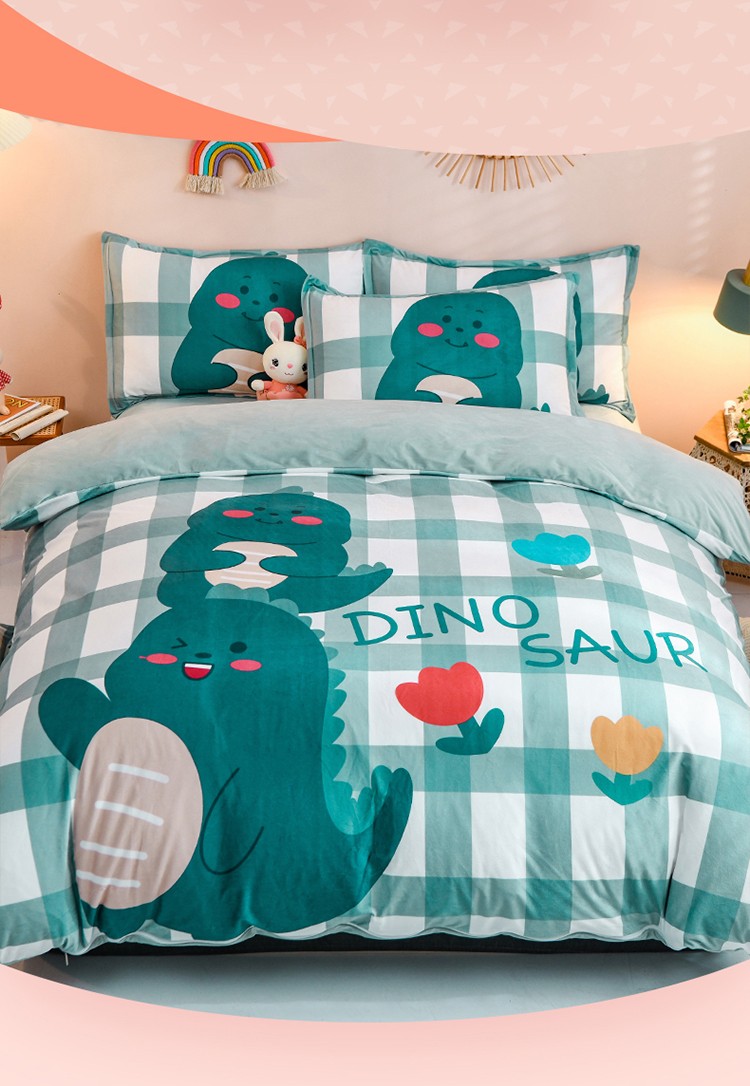 卡初 2020新款秋冬大版宝宝绒牛奶绒四件套玩耍恐龙