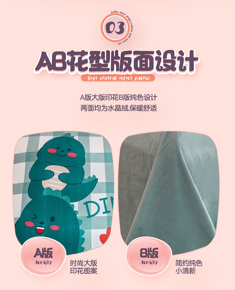 商品名称:卡初 2020新款秋冬大版宝宝绒牛奶绒四件套玩耍恐龙