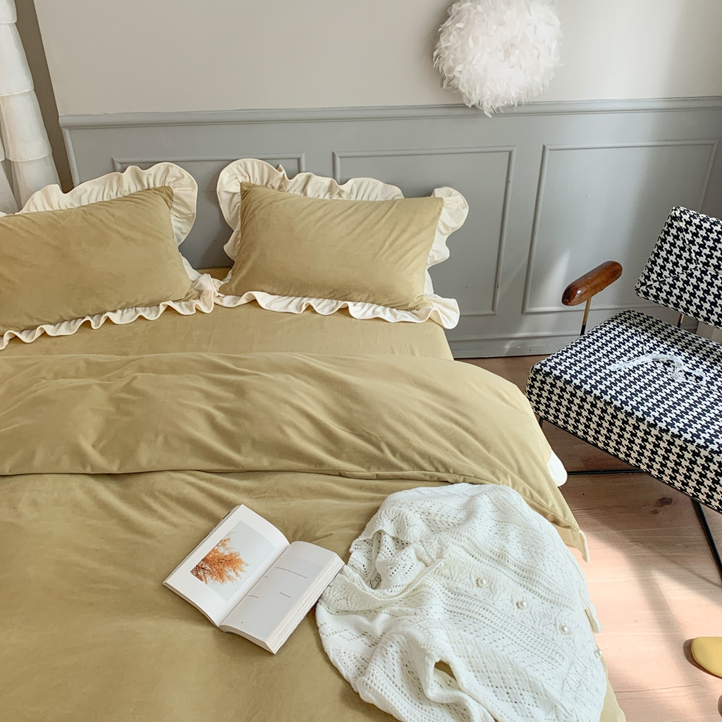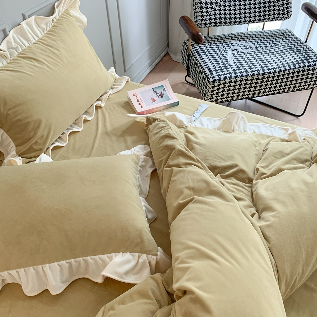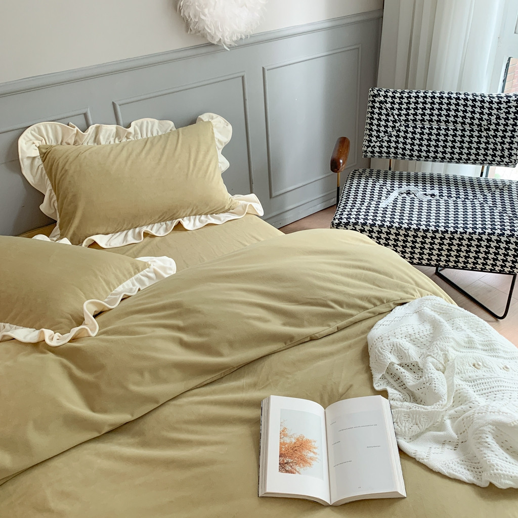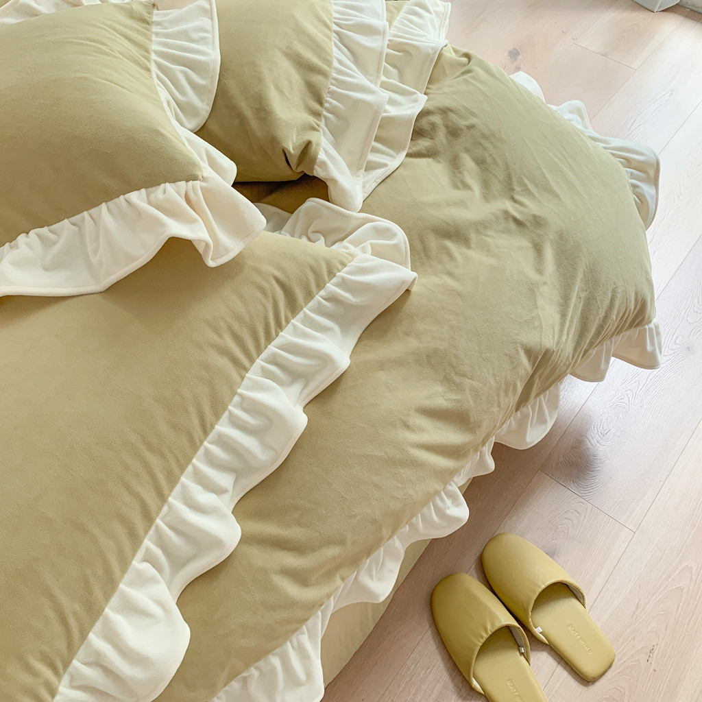 时年 2021新款婴肤绒纯色花边款四件套 香草抹茶