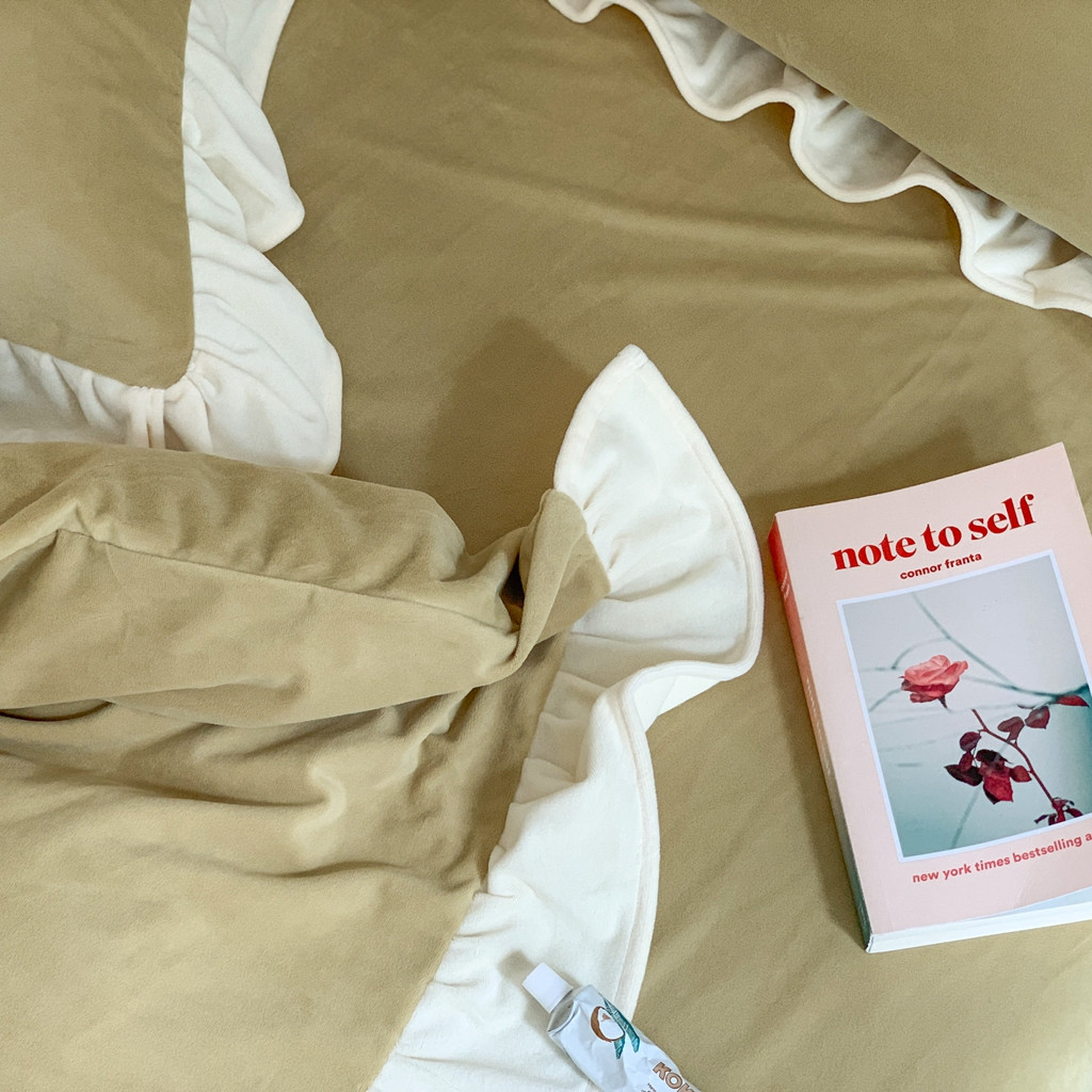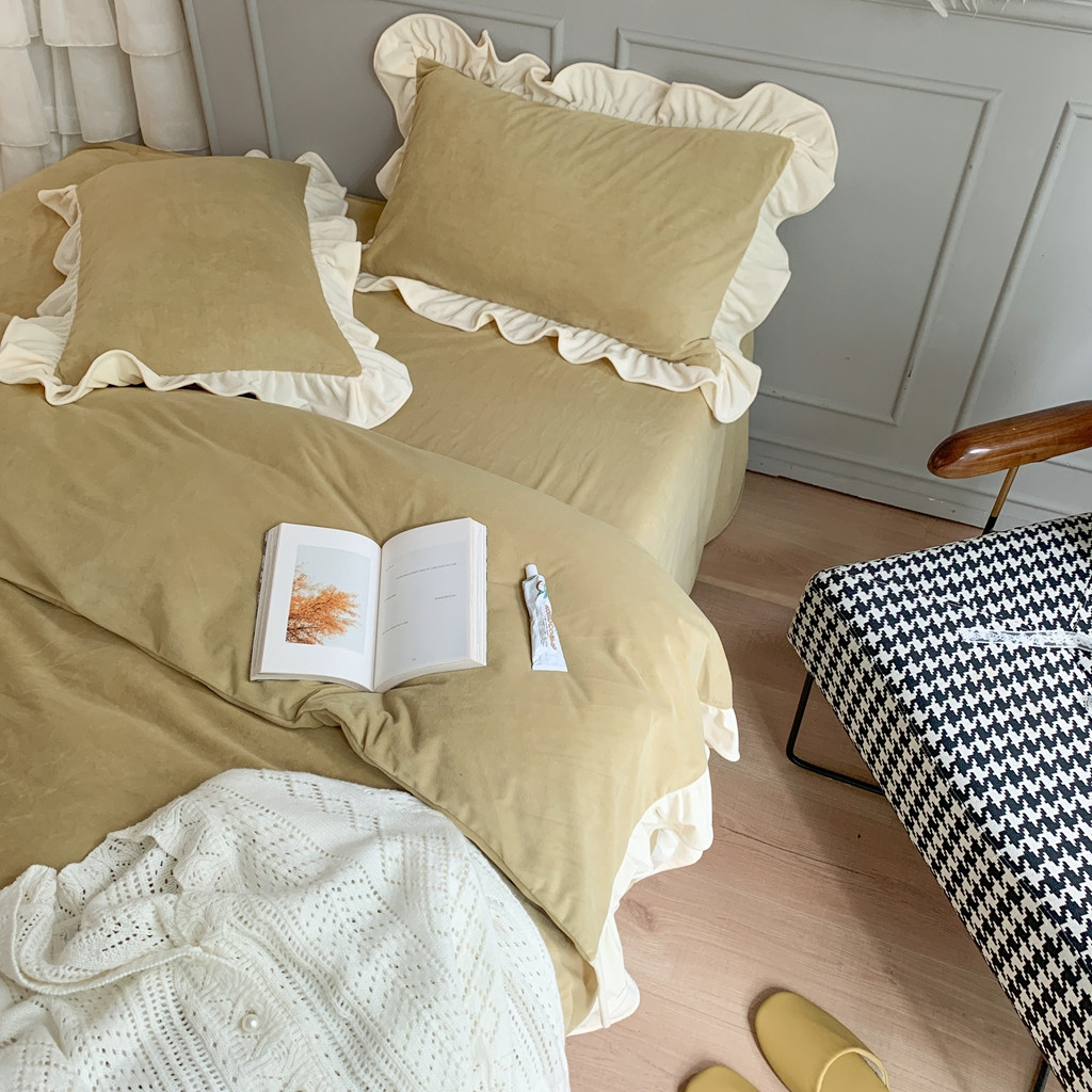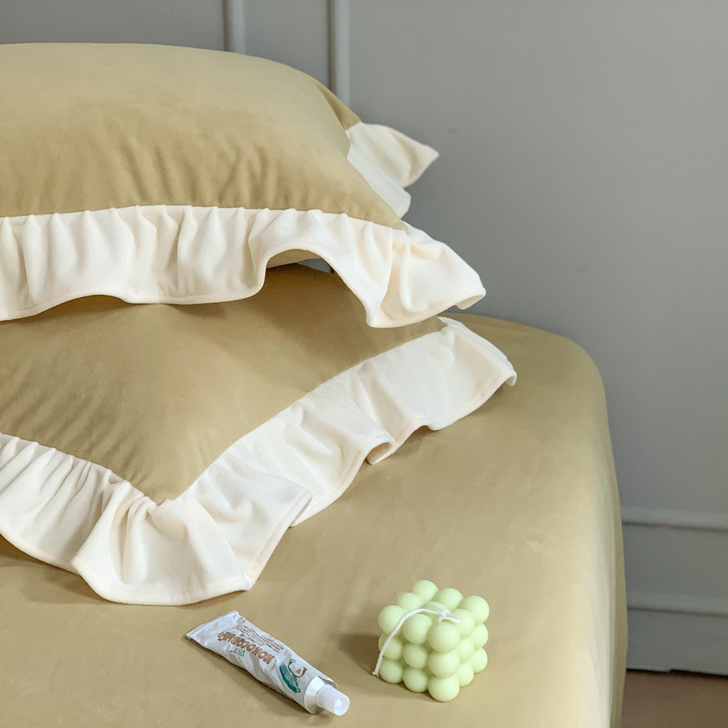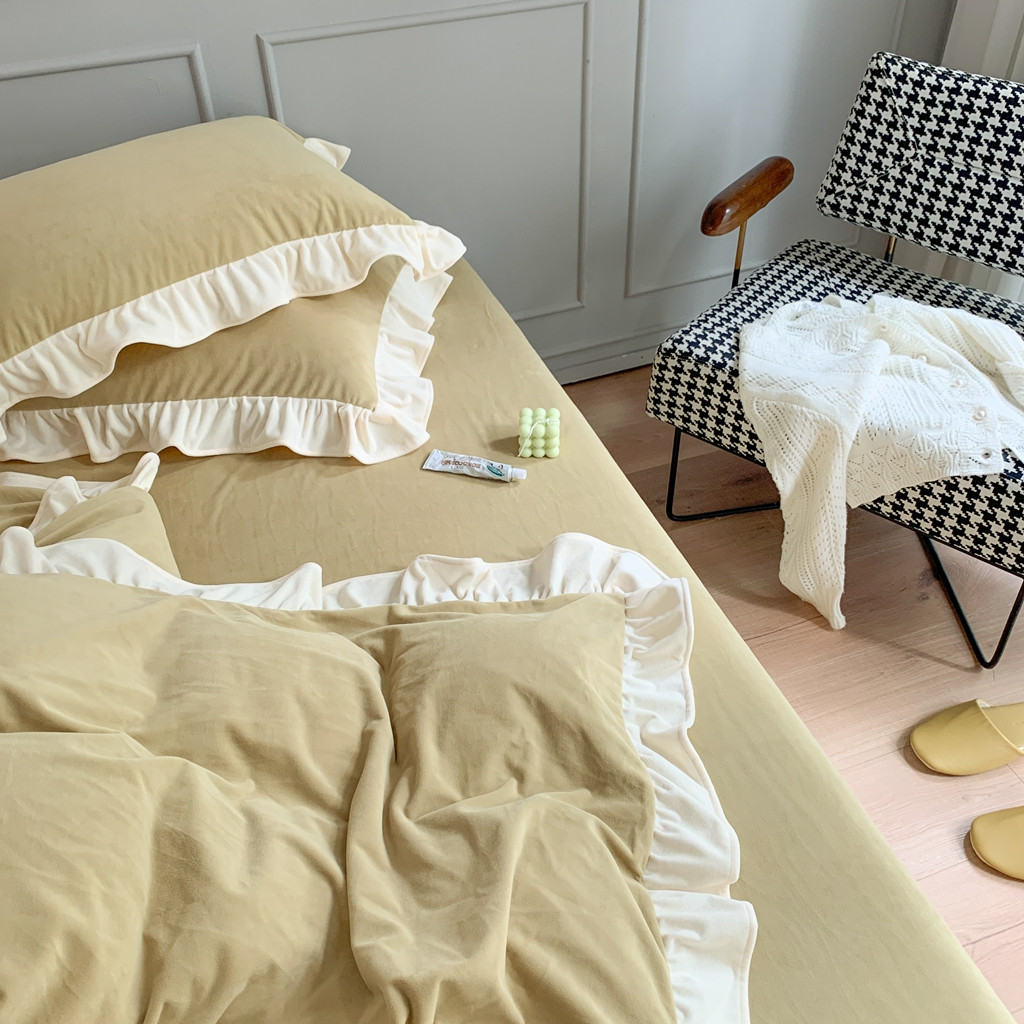 时年 2021新款婴肤绒纯色花边款四件套 香草抹茶