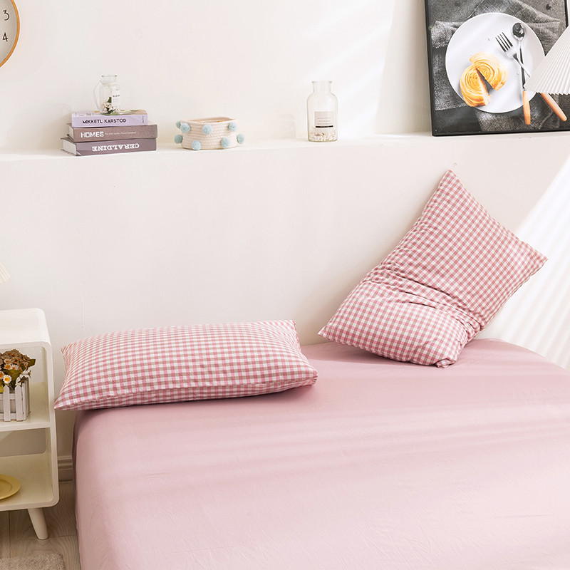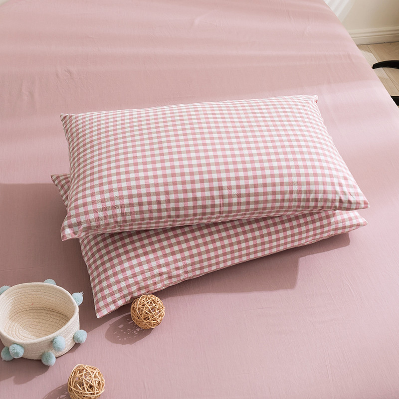 简色坊 2023新款全棉水洗棉单品枕套一只 豆沙小格
