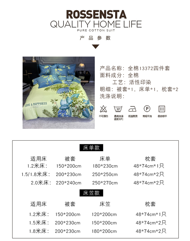 当前位置: 91家纺网 > 商品网购 > 床品套件 > 四件套 > 全棉活性四件套 > 金爱家 2021新款全棉活性花卉系列四件套 映曲