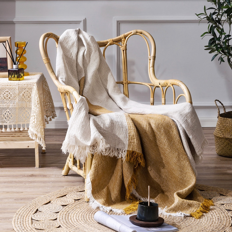 (总)简家居 2021新款纯亚麻流苏盖毯