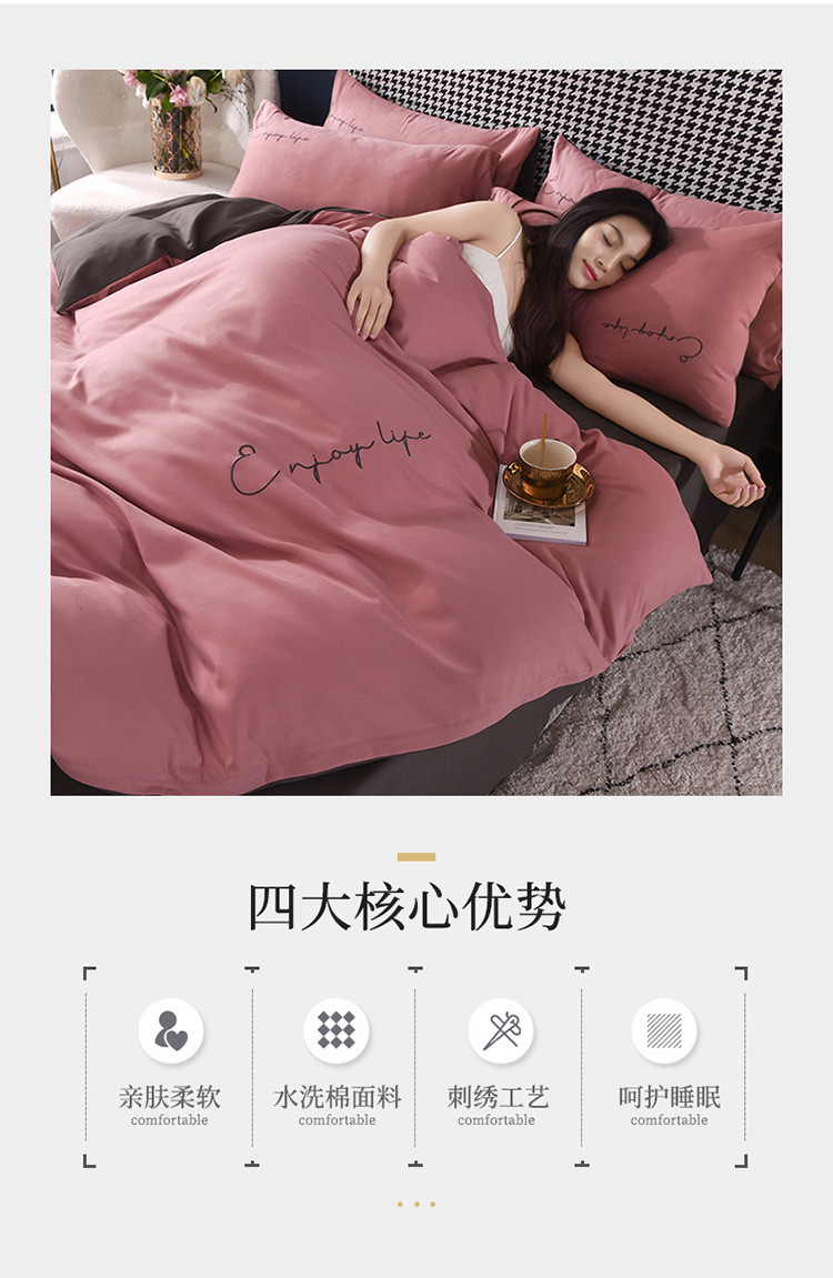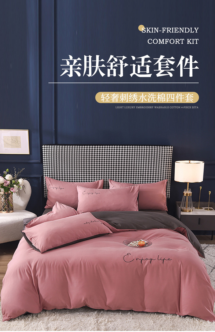 大米家居 新款轻奢刺绣水洗棉四件套 星耀系列浅豆沙+高级灰