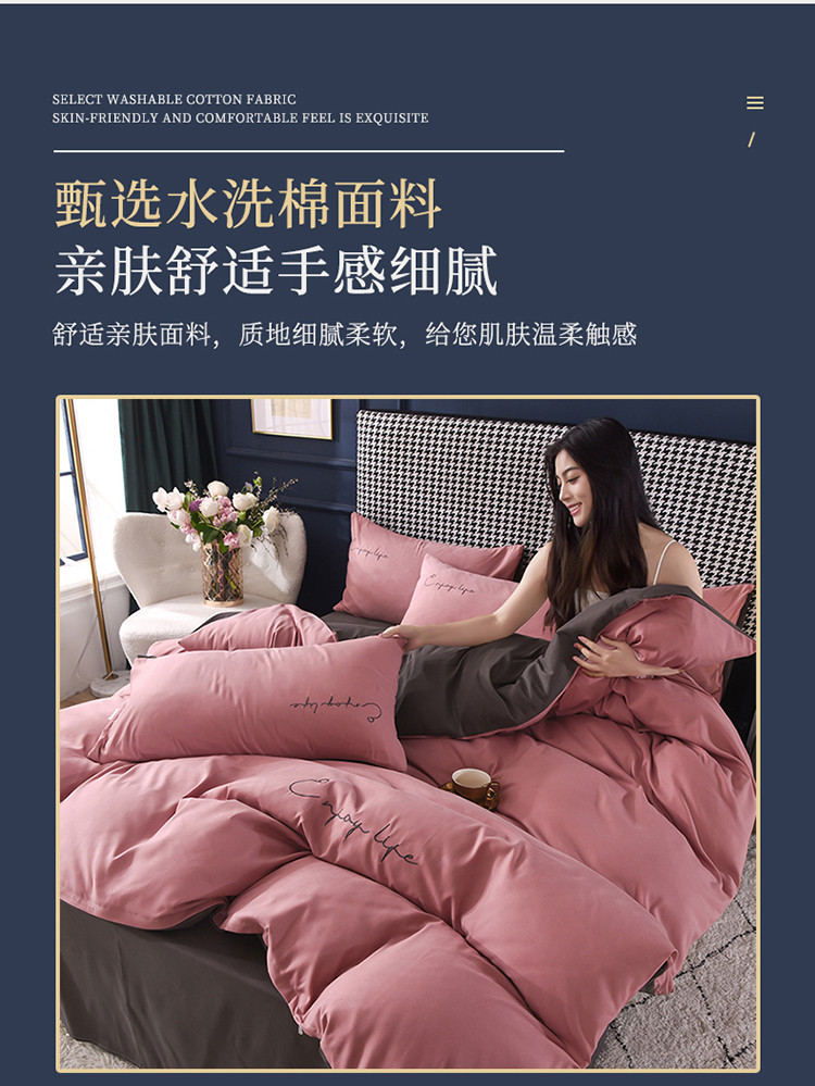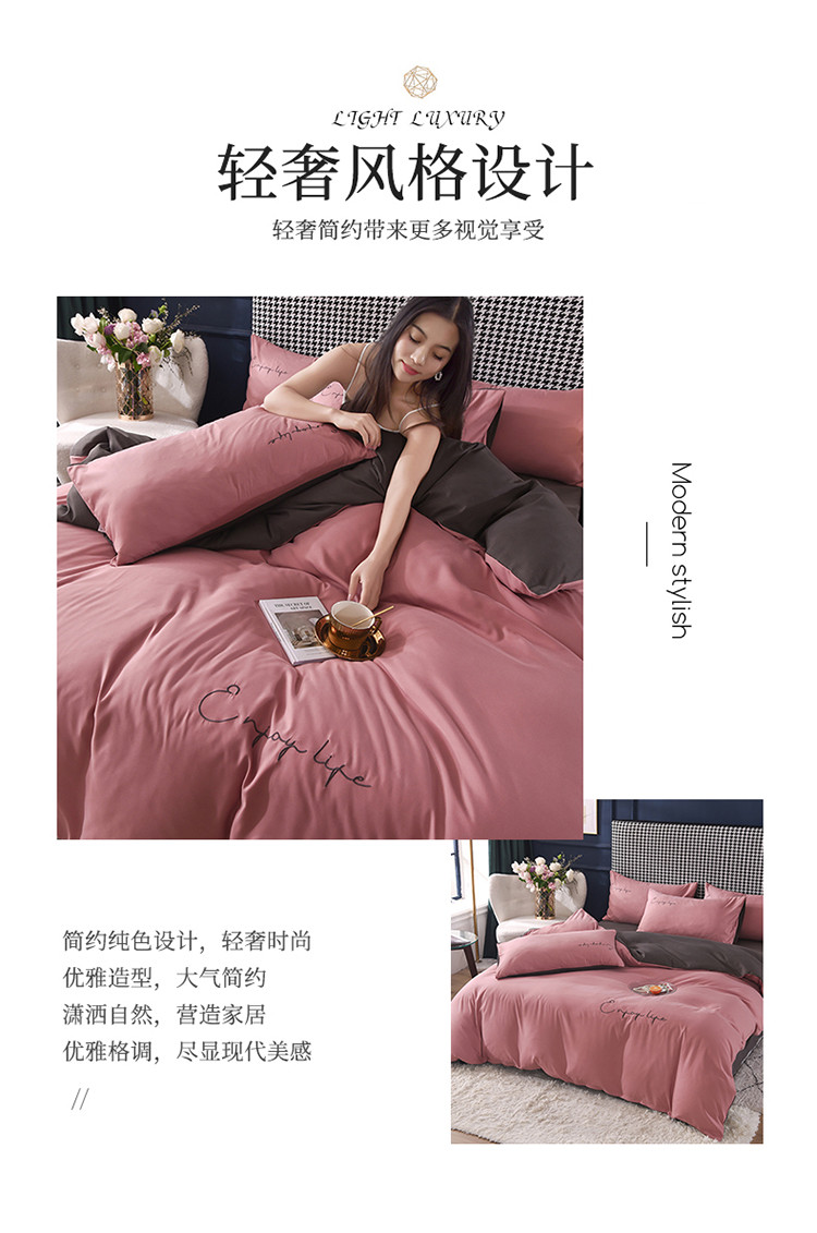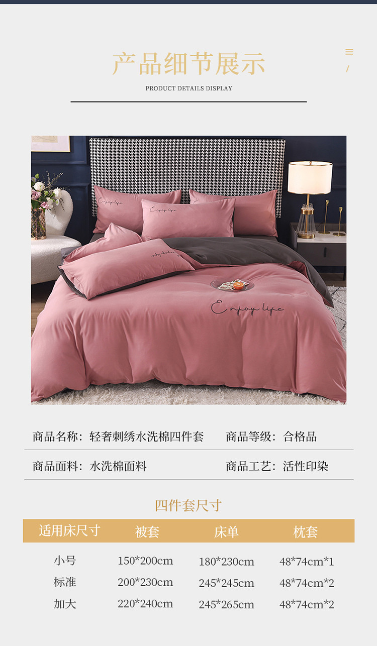 商品名称:大米家居 新款轻奢刺绣水洗棉四件套 星耀系列浅豆沙+高级灰