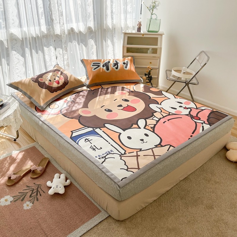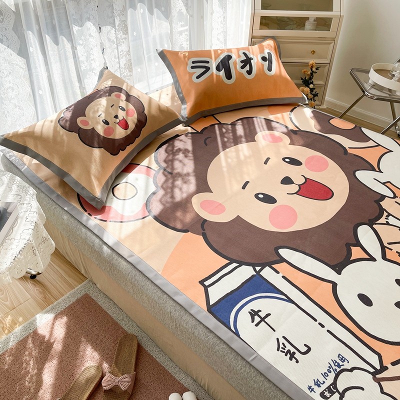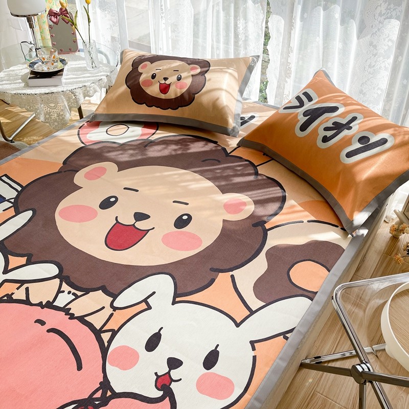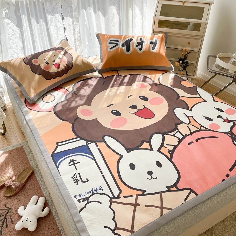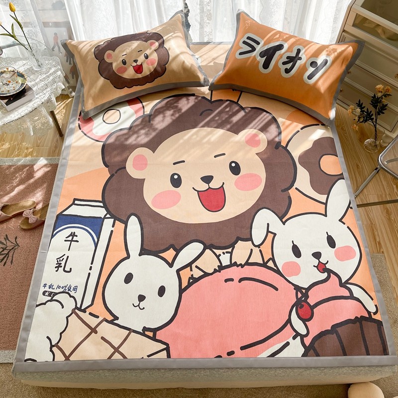 商品名称:慕尚 2025新款卡通宽边大版冰丝席 快乐狮兔