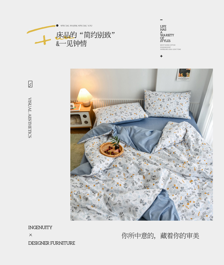 (总)捌月 2025新款13372全棉四件套花园里系列小清新全棉四件套热卖新品,艾美,蓝风铃,蓝汐,流年,魅影,木兰,年华,浅浅,青花瓷,青木,轻颜,韶华,思绪,汐月