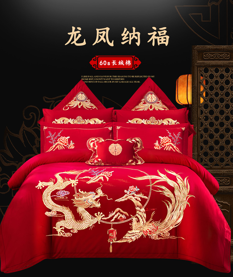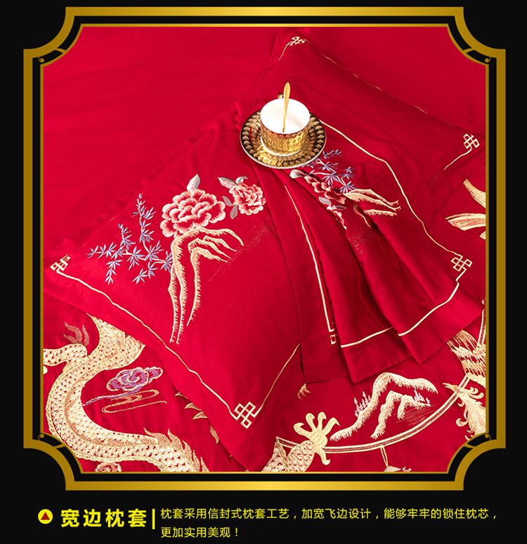 当前位置: 91家纺网 > 商品网购 > 床品套件 > 四件套 > 婚庆四件套 > 慕她 2025四件套大红色刺绣花结婚全棉纯棉多件套 龙凤纳福