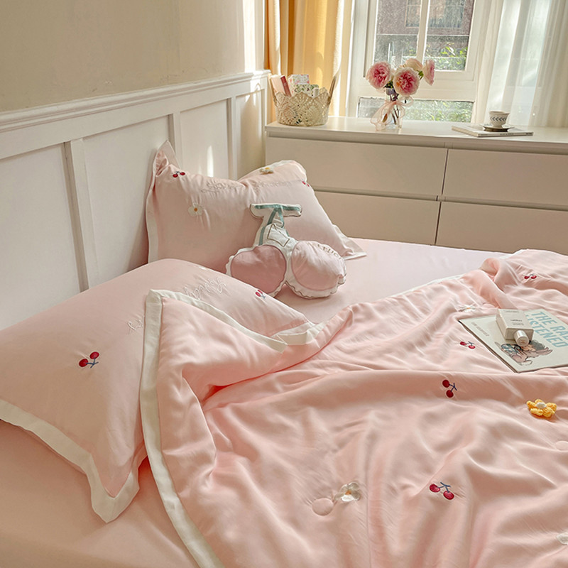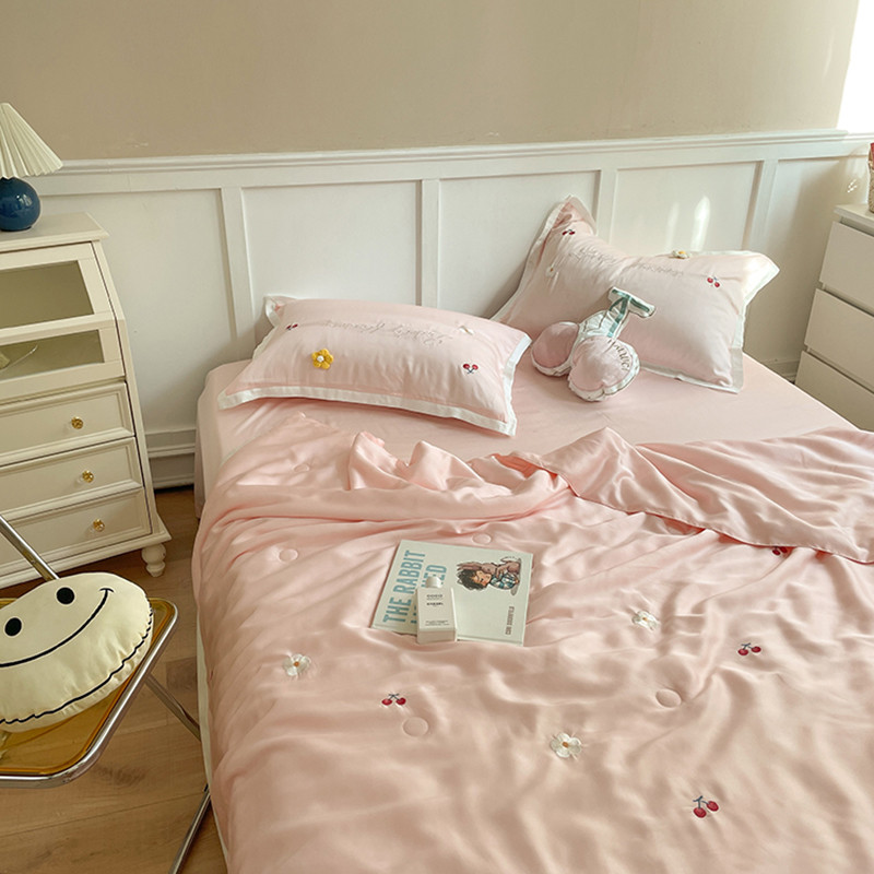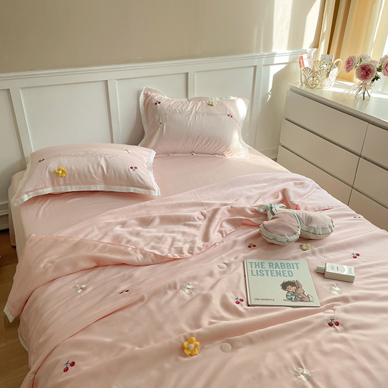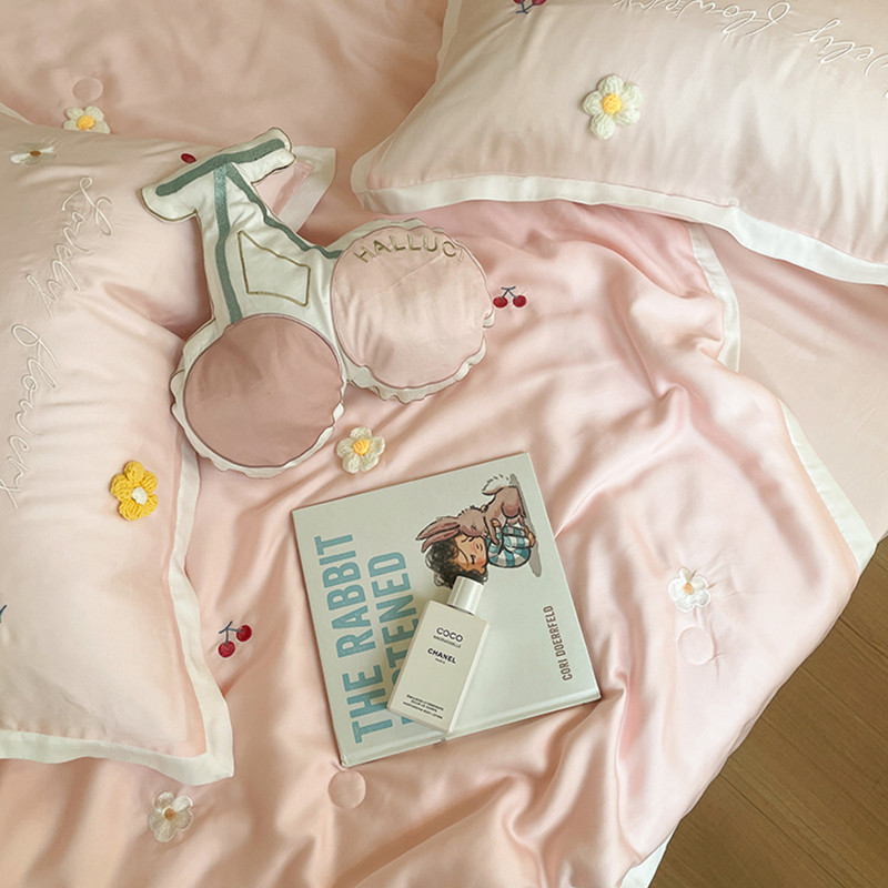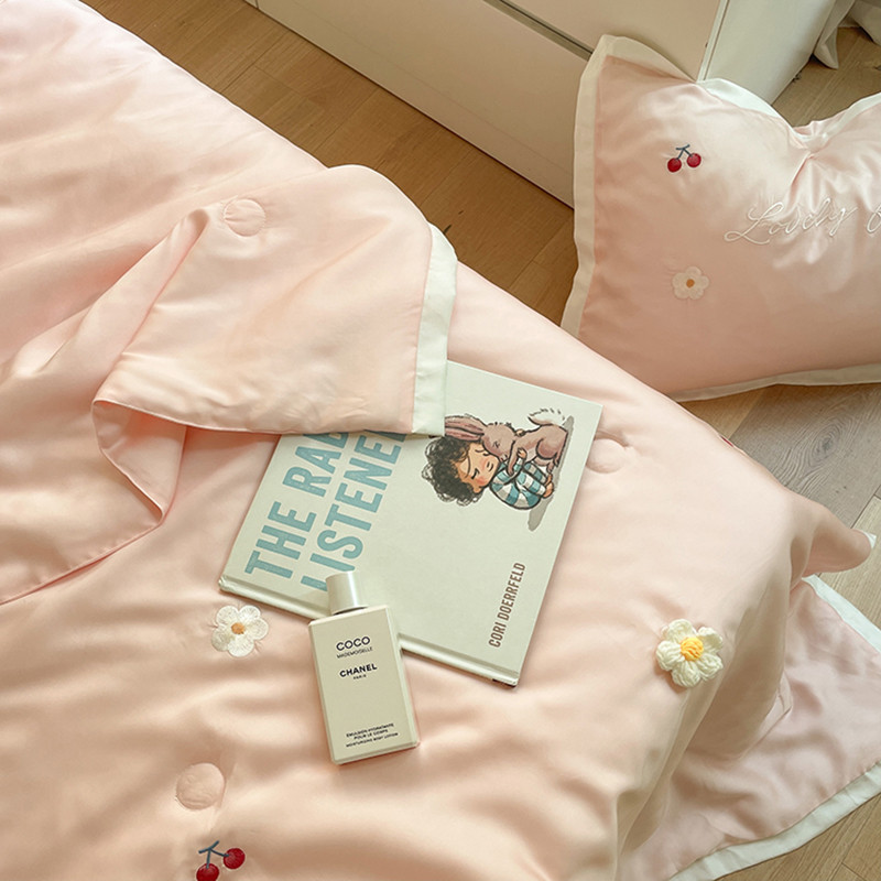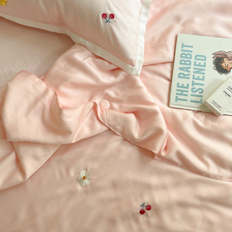 时亿家居 2021新款80s天丝夏被四件套 樱桃-粉