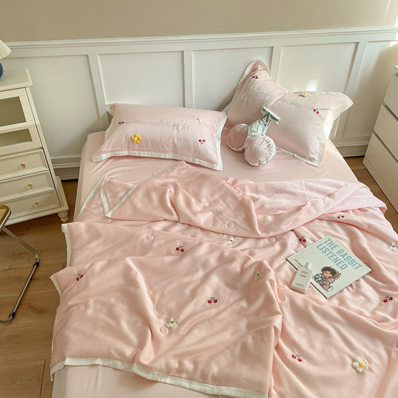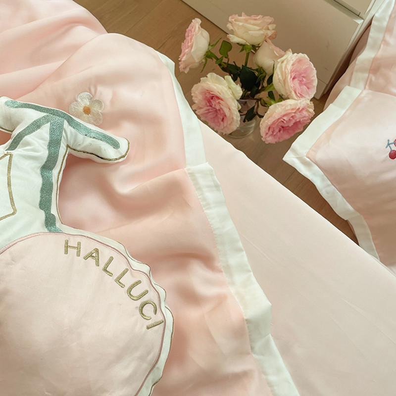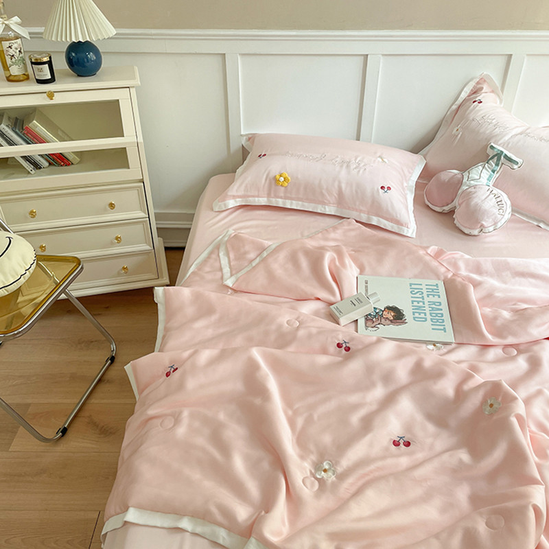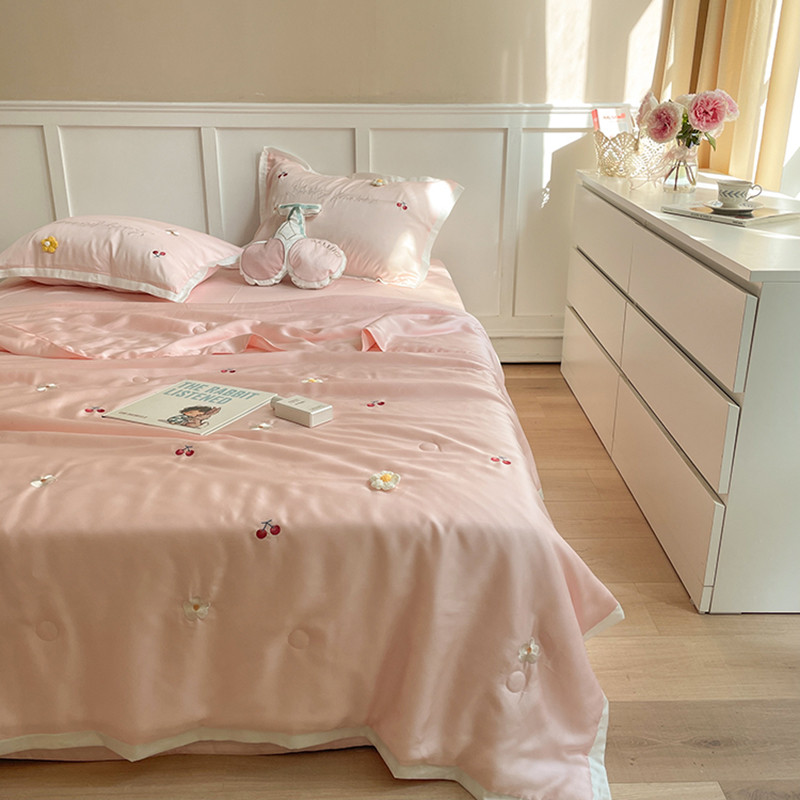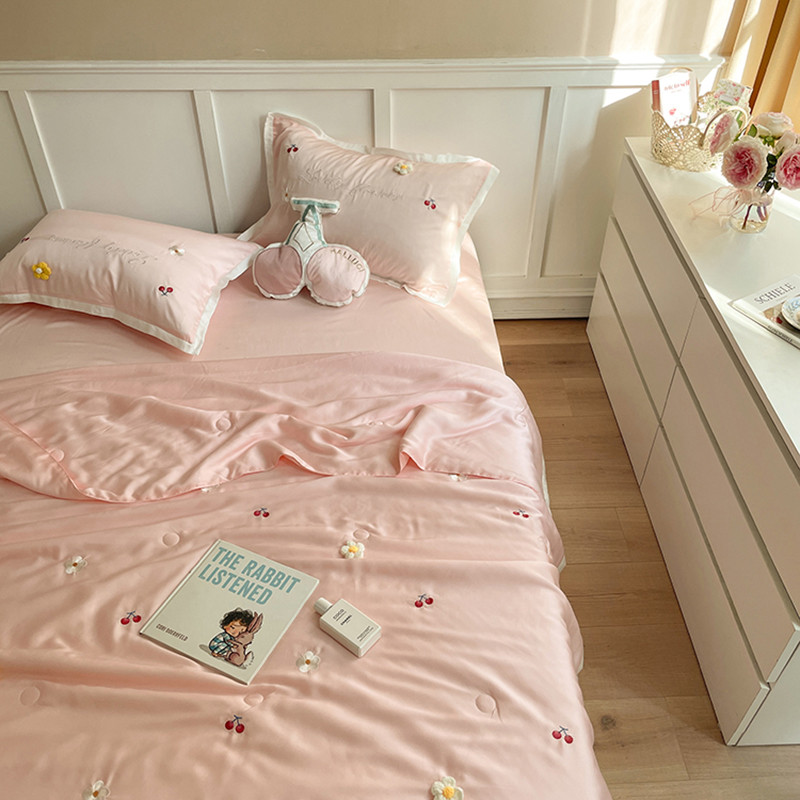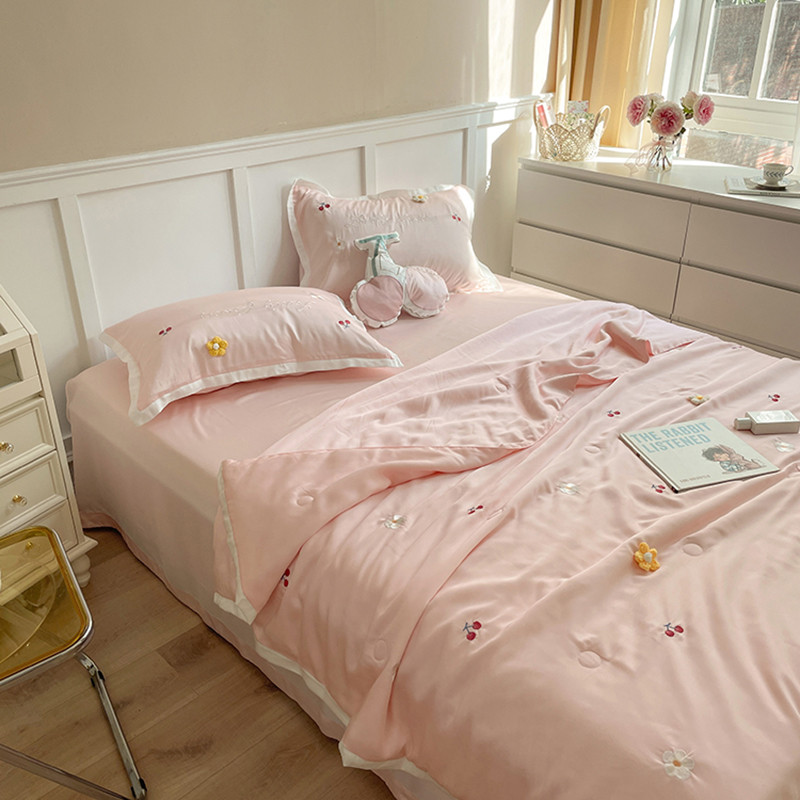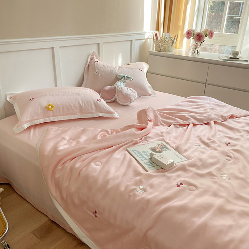 时亿家居 2021新款80s天丝夏被四件套 樱桃-粉