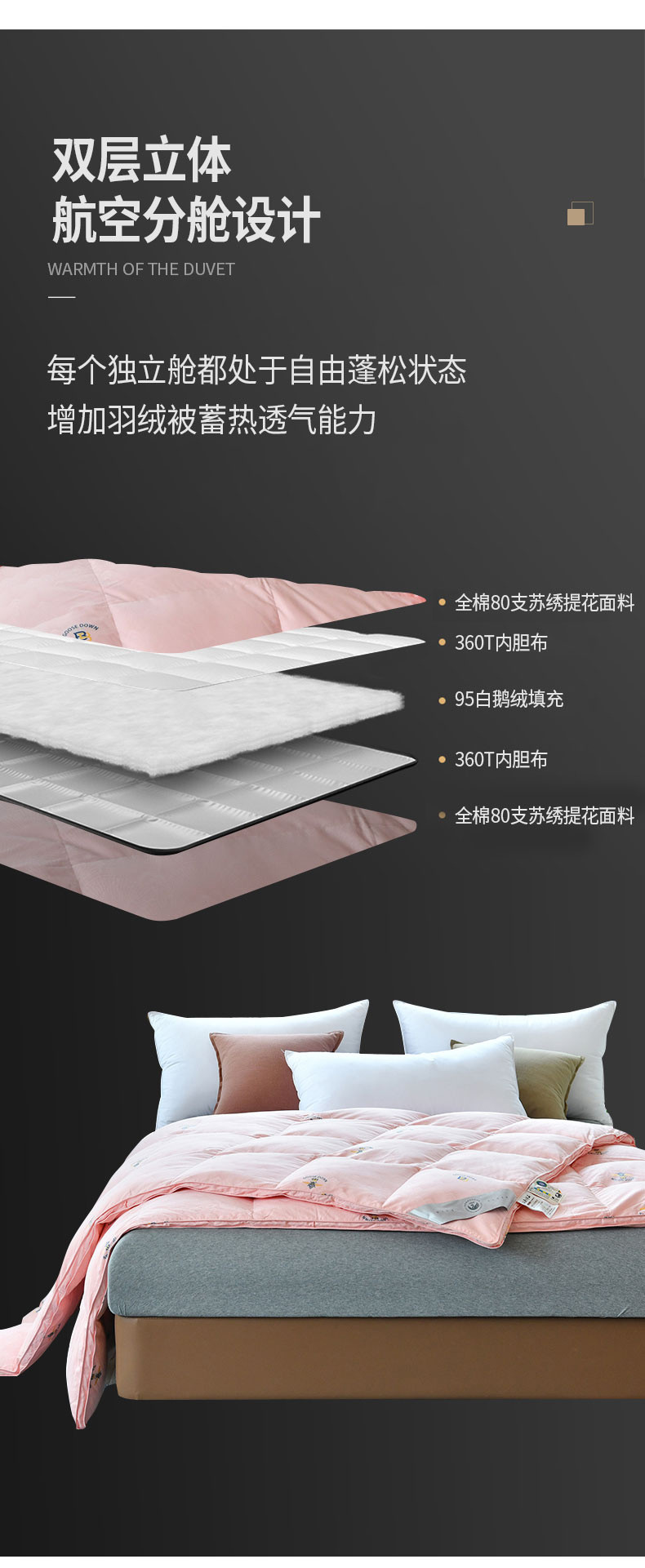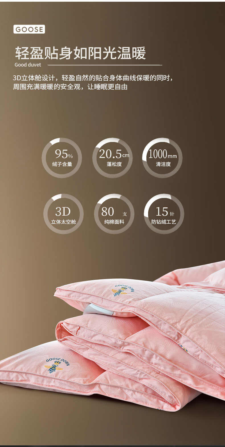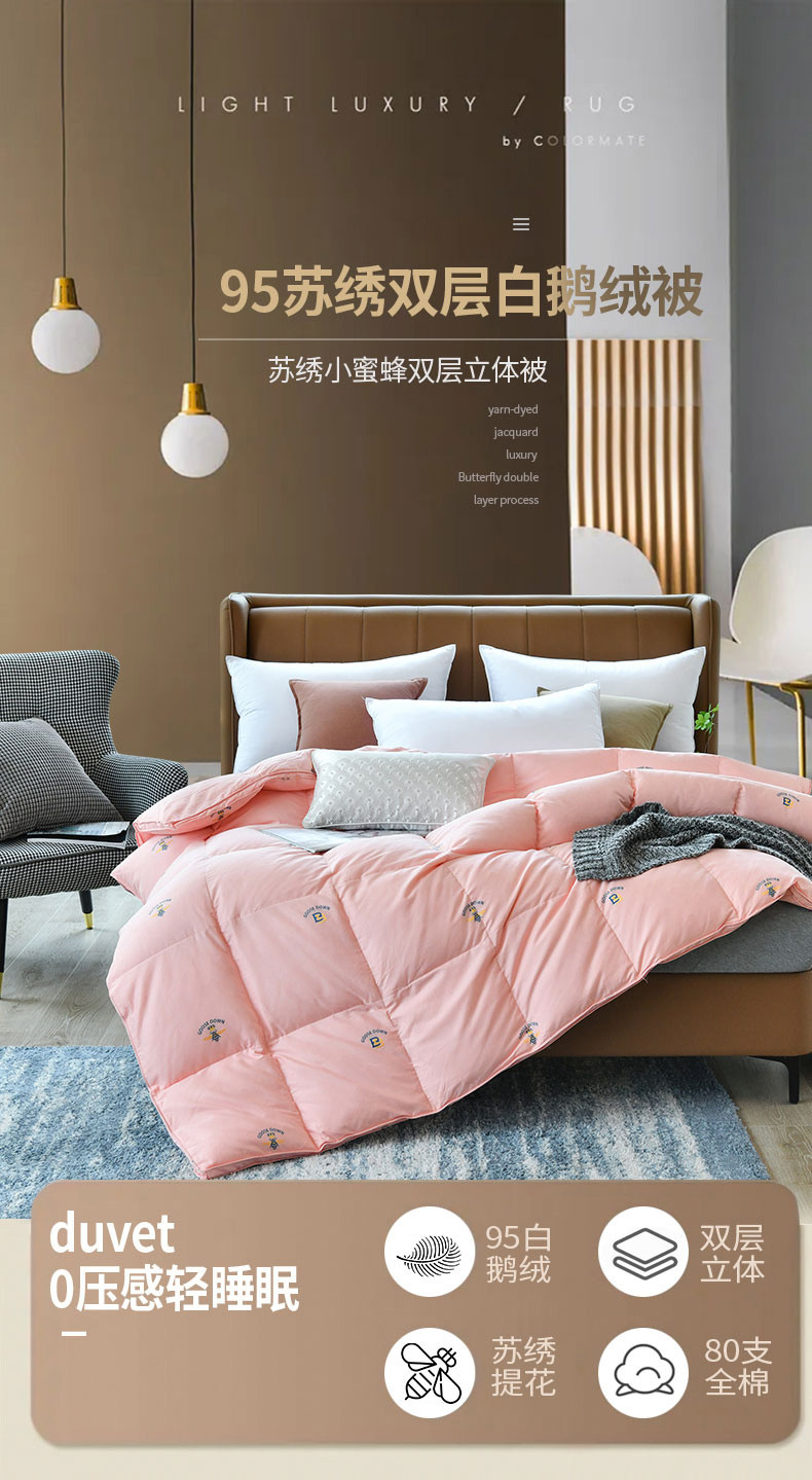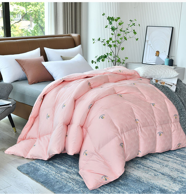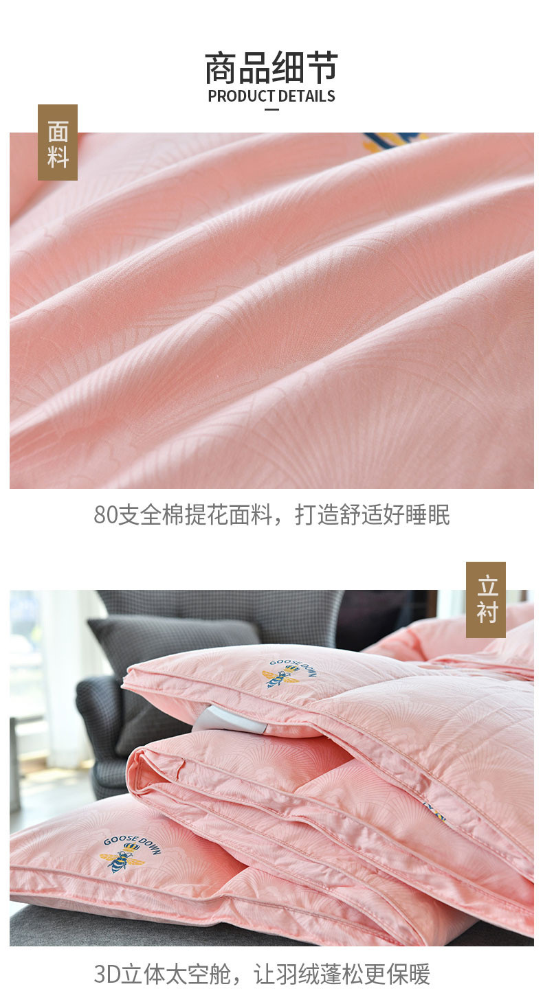 商品名称:绒研羽绒 2025新款苏绣小蜜蜂双层立体95白鹅绒羽绒被冬被 草莓粉