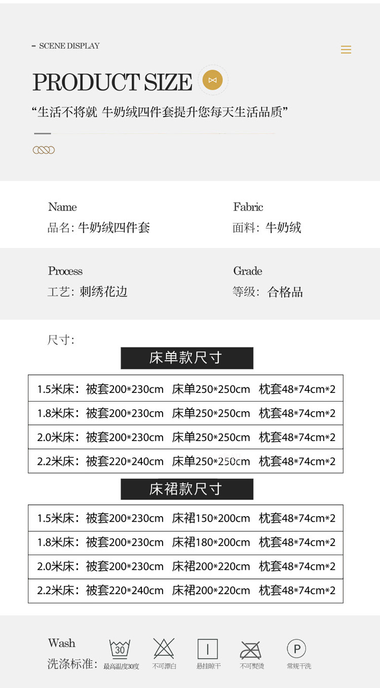 2.2m床裙单款四件套(被套2.2*2.4m) | ¥150.00 |