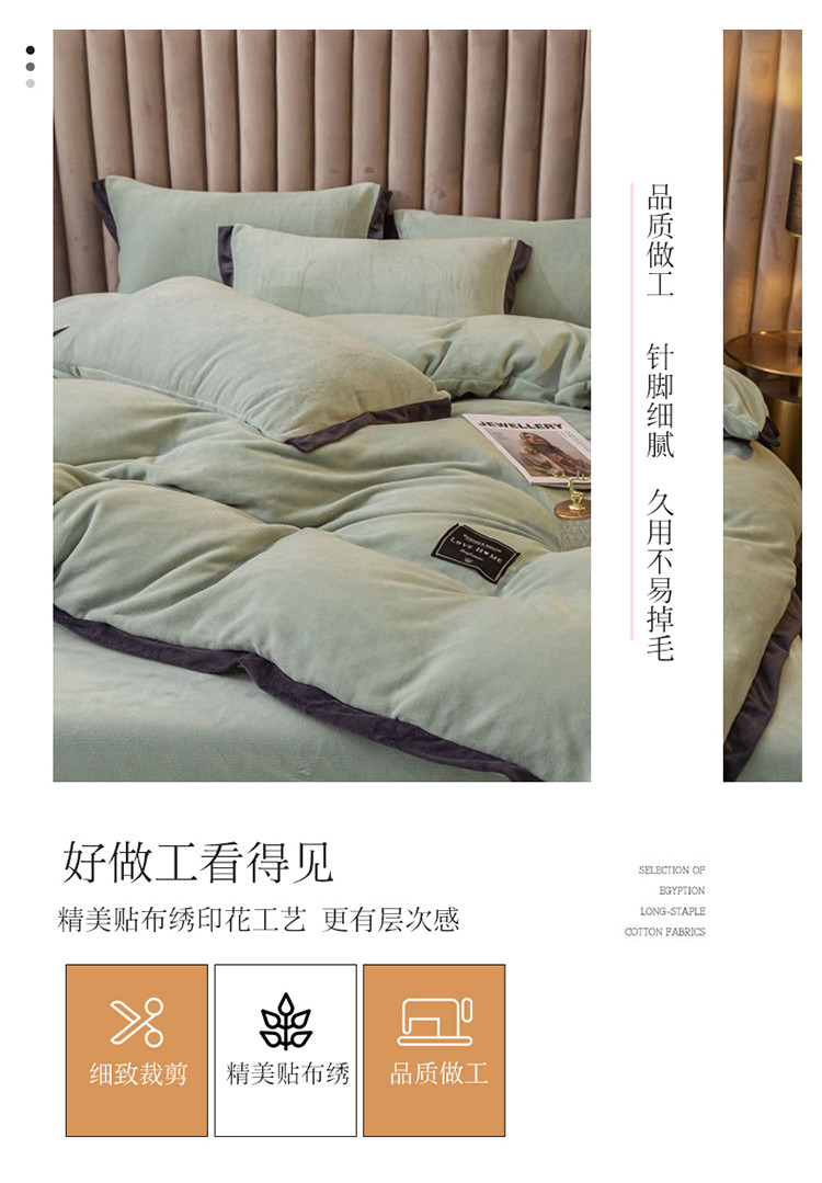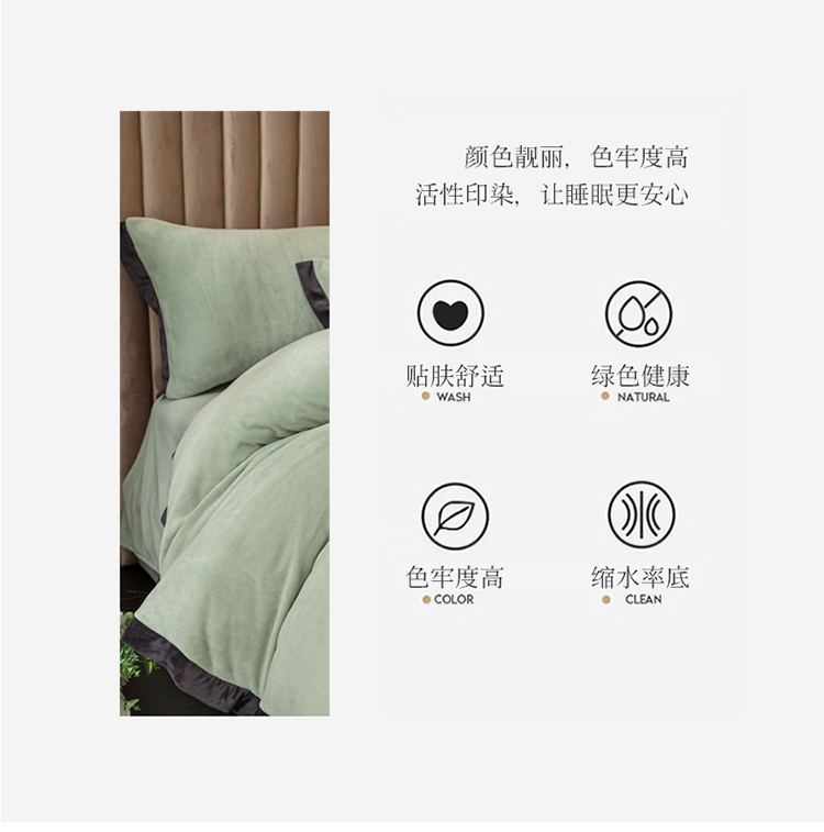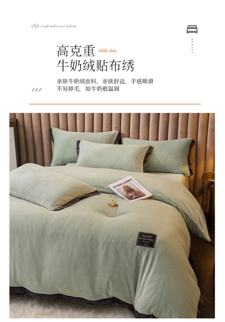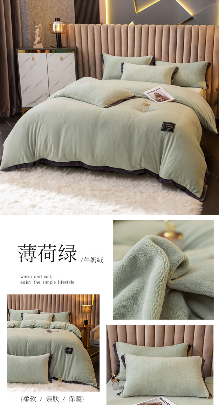 大米家居 新款高克重宽边牛奶宝宝绒法莱亲肤绒四件套荣耀薄荷绿