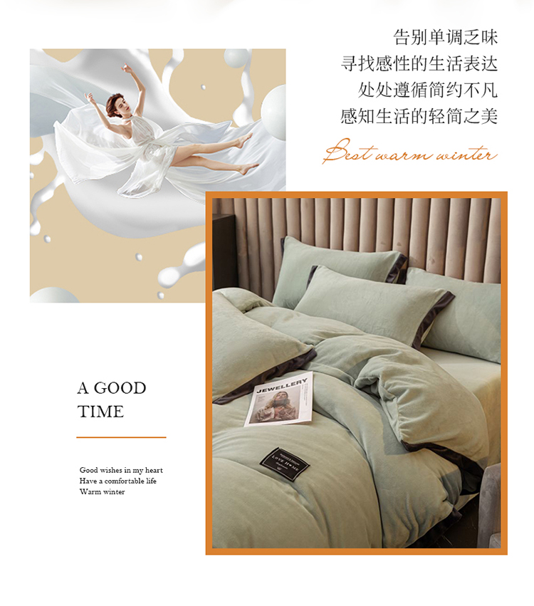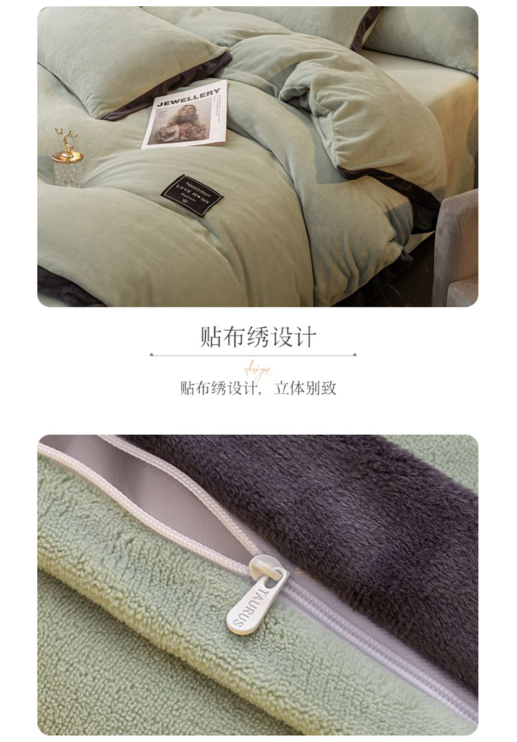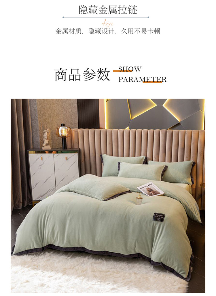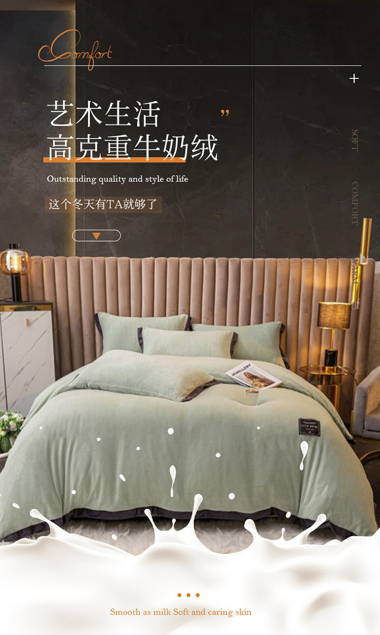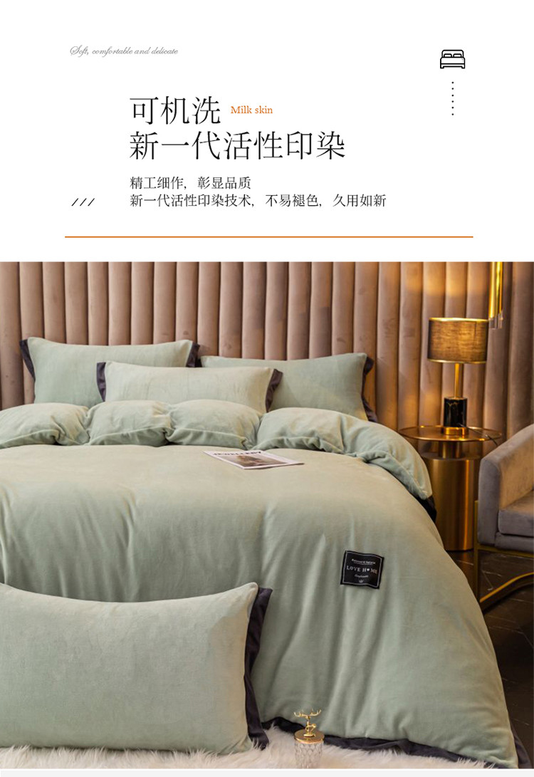 大米家居 新款高克重宽边牛奶宝宝绒法莱亲肤绒四件套荣耀薄荷绿