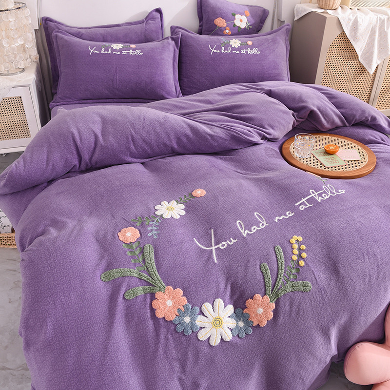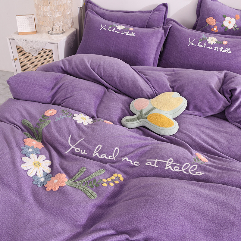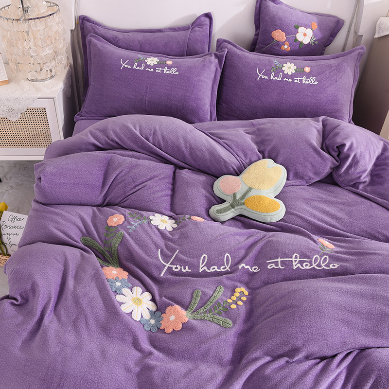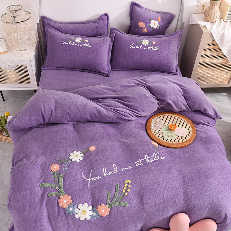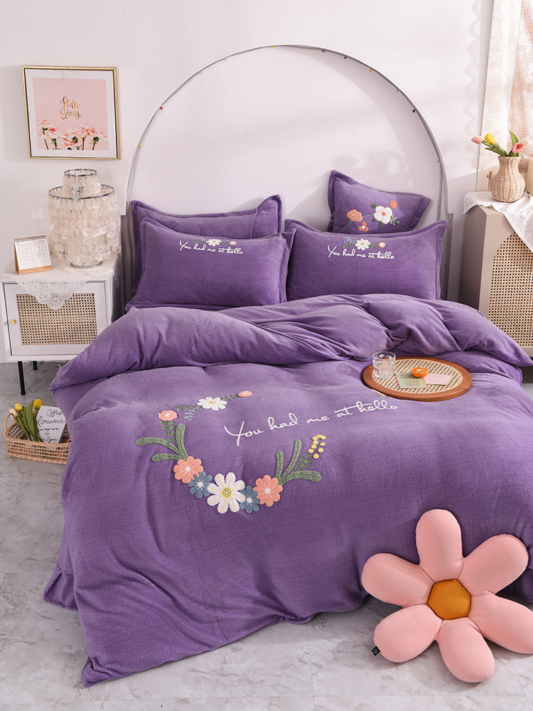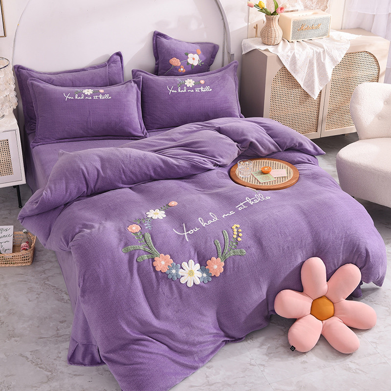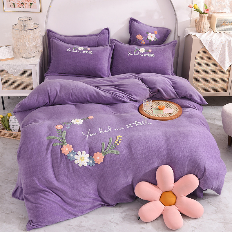 商品名称:仟网汇 2021新款牛奶绒花开浪漫毛巾绣四件套 紫色