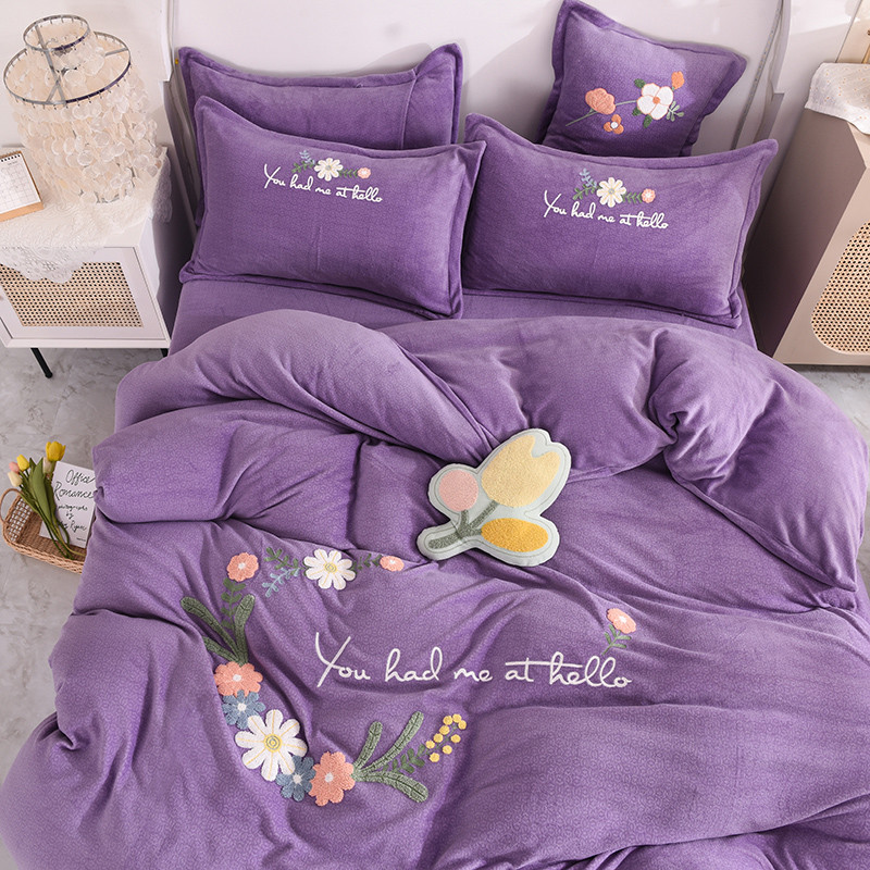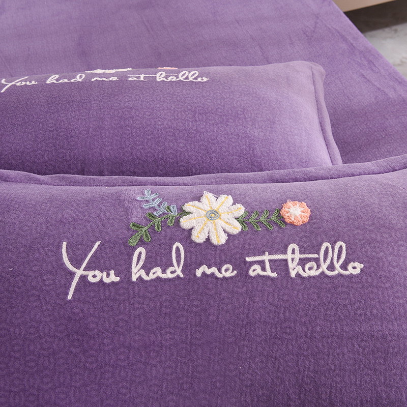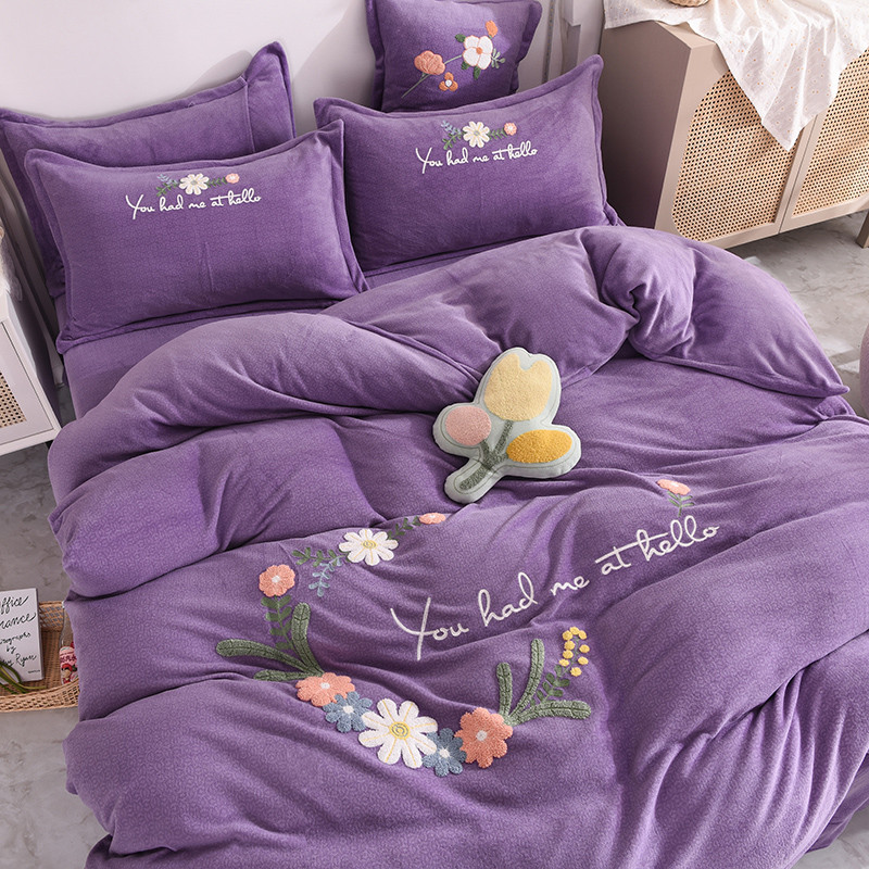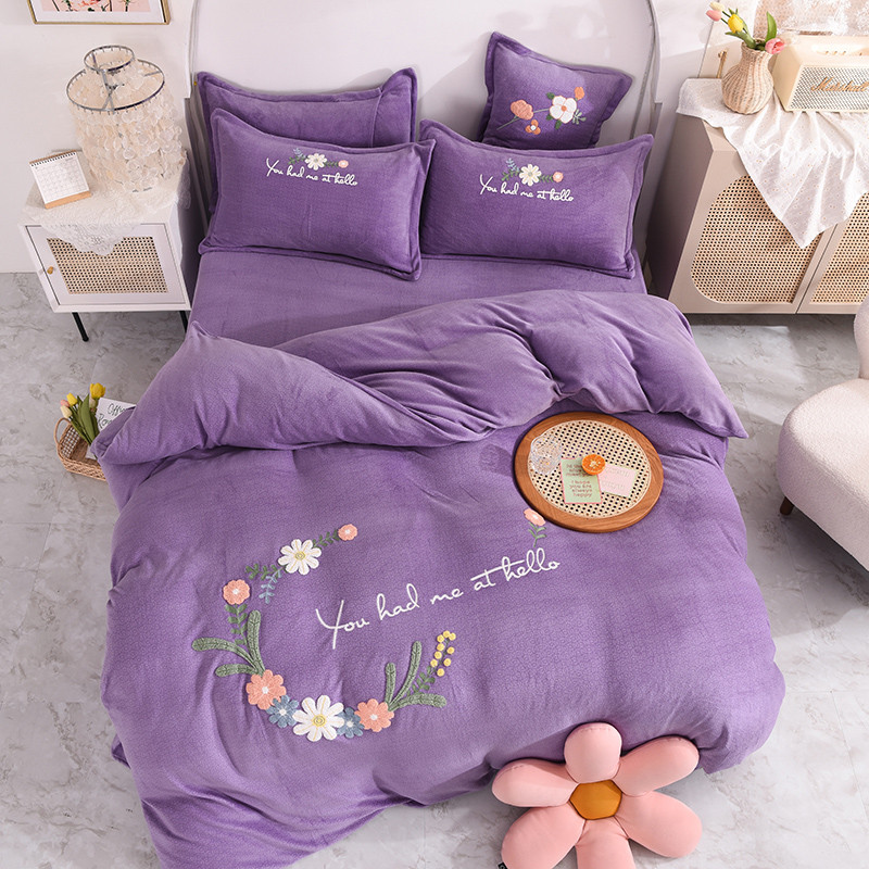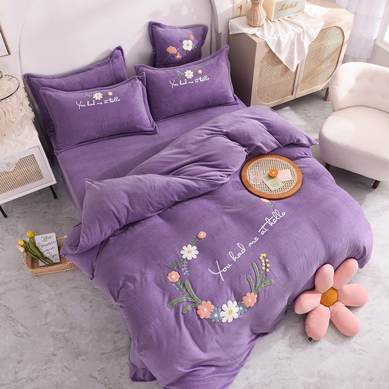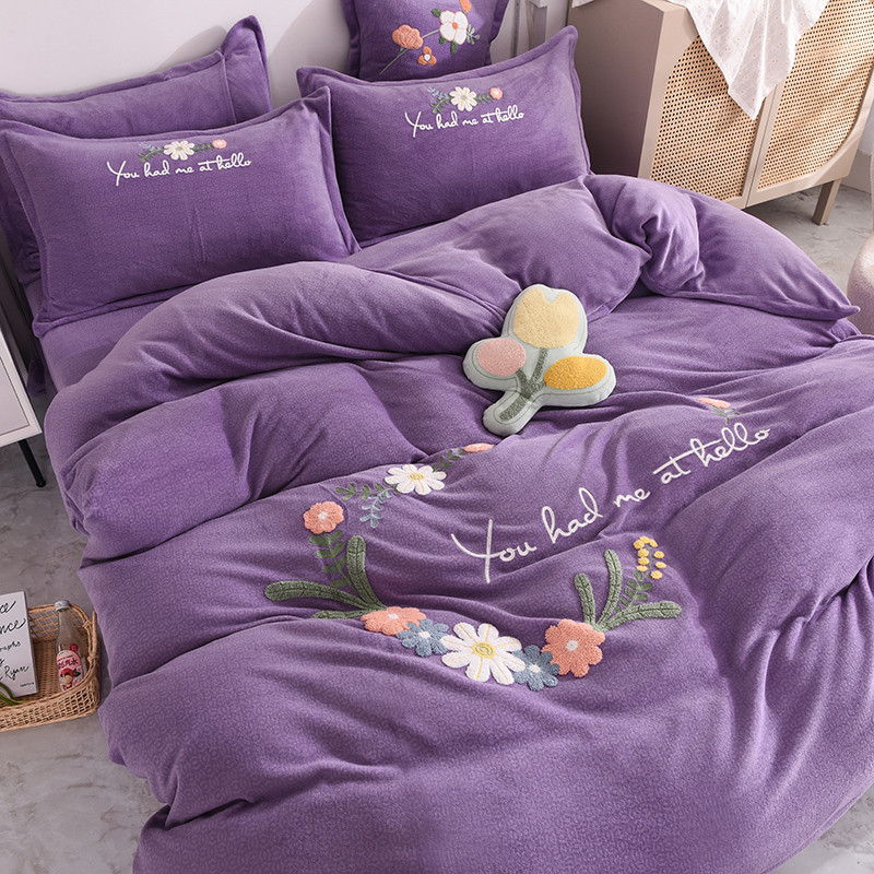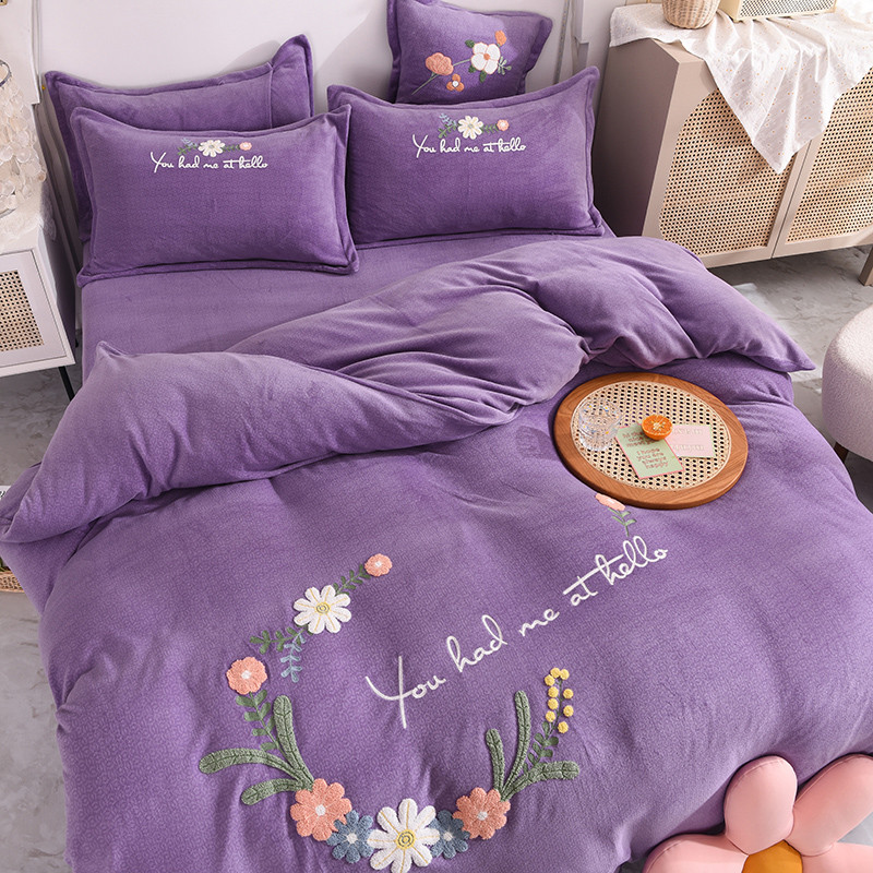 商品名称:仟网汇 2021新款牛奶绒花开浪漫毛巾绣四件套 紫色