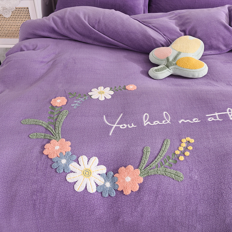 仟网汇 2021新款牛奶绒花开浪漫毛巾绣四件套 紫色