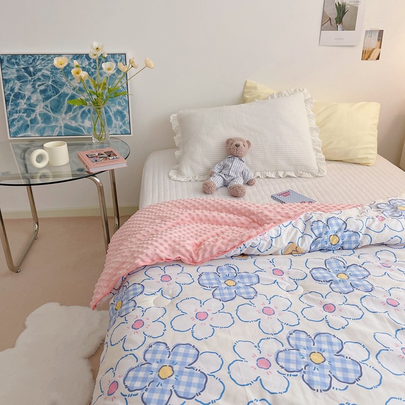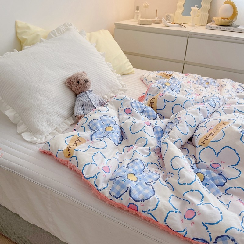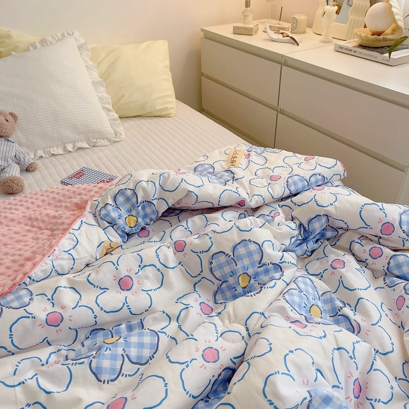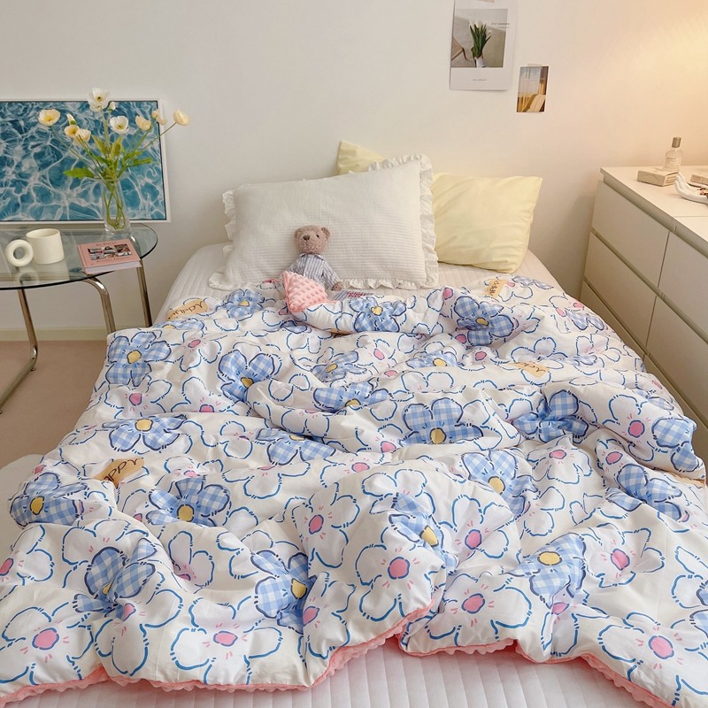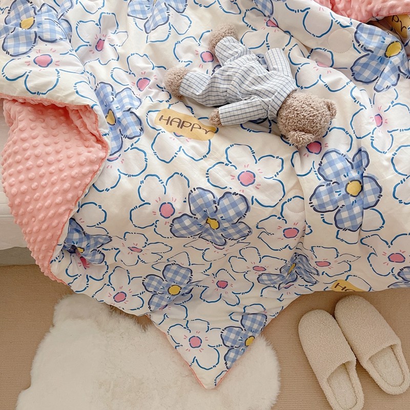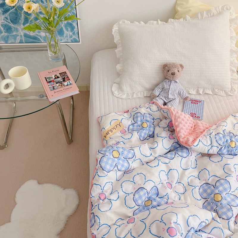 星期八 2021新款韩国超ins进口安抚豆豆被子春秋被 蓝色小花
