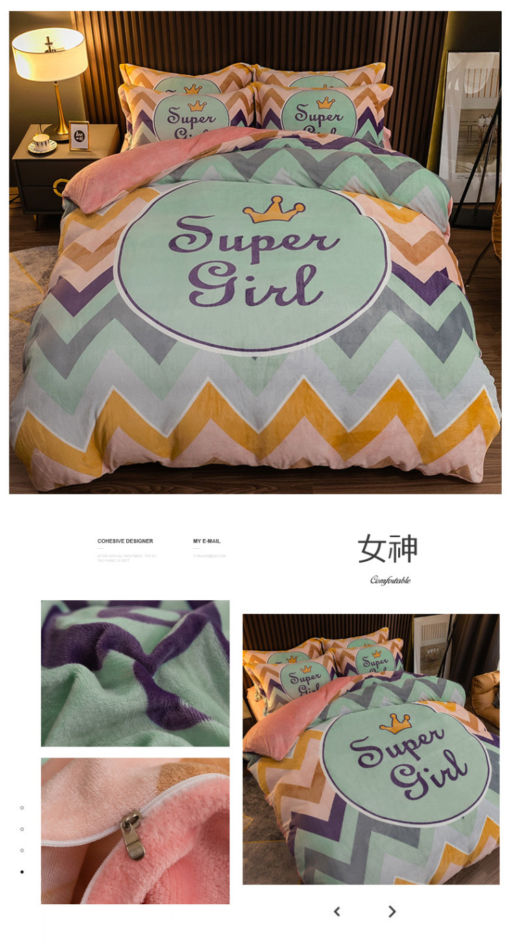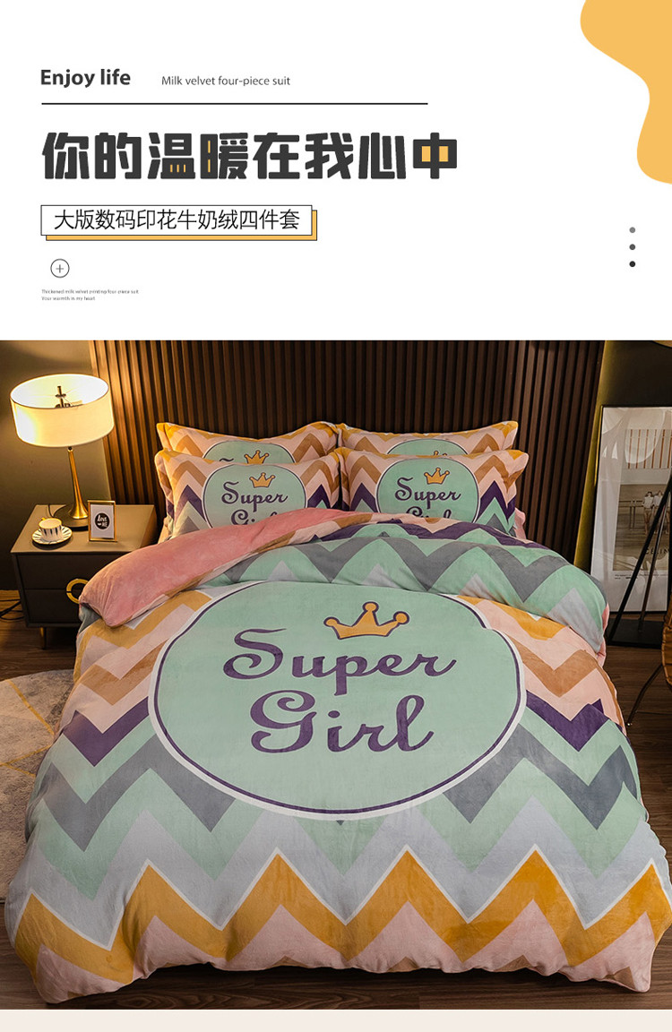 商品名称:寐居 2021新款大版数码印花牛奶绒四件套 女神