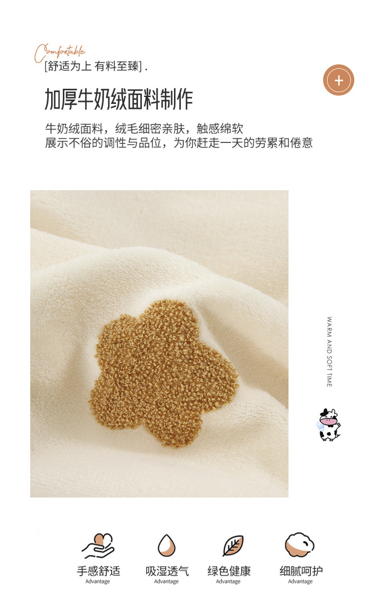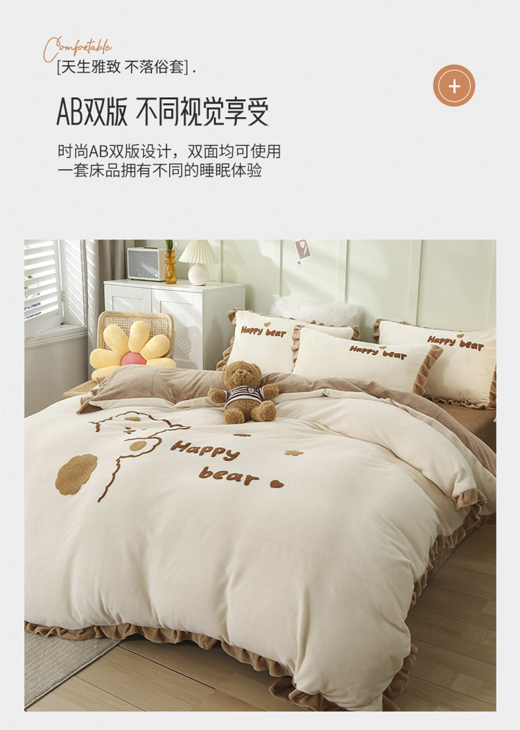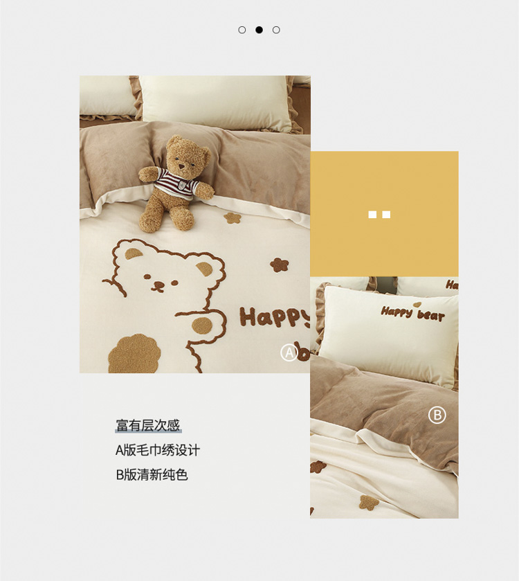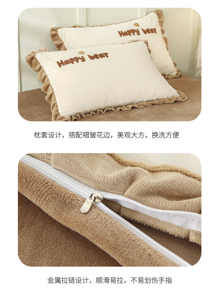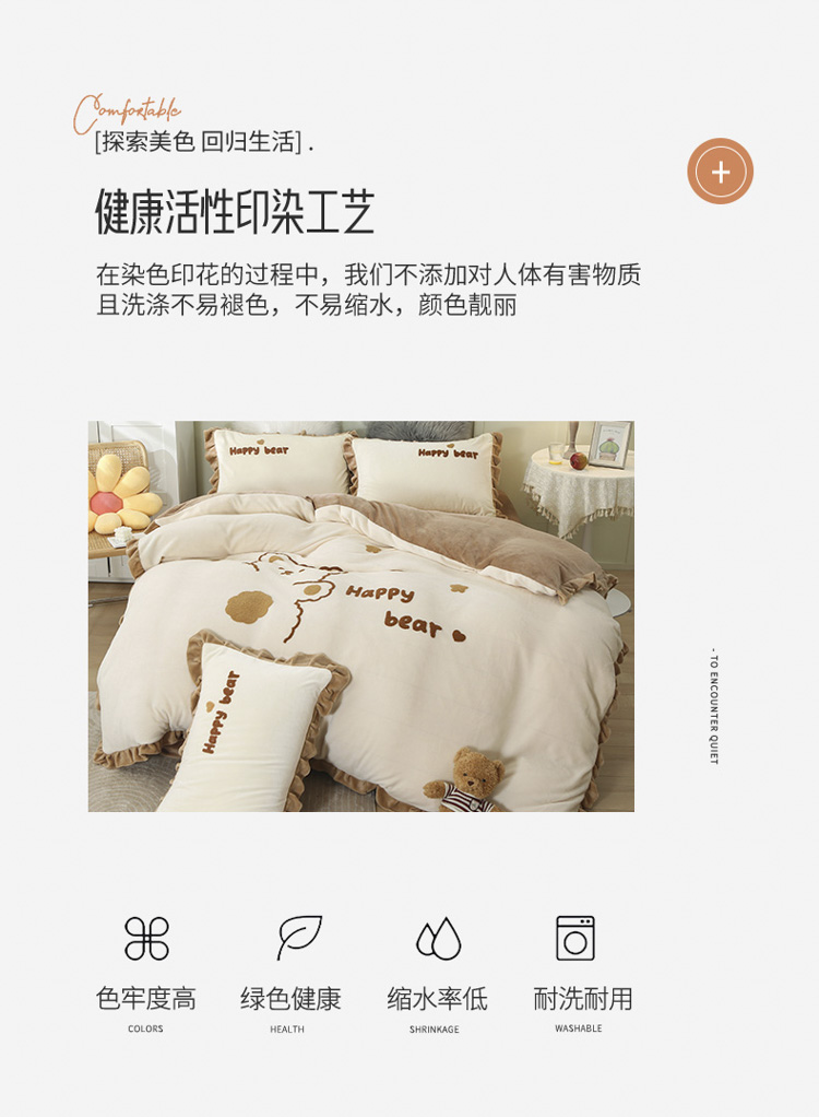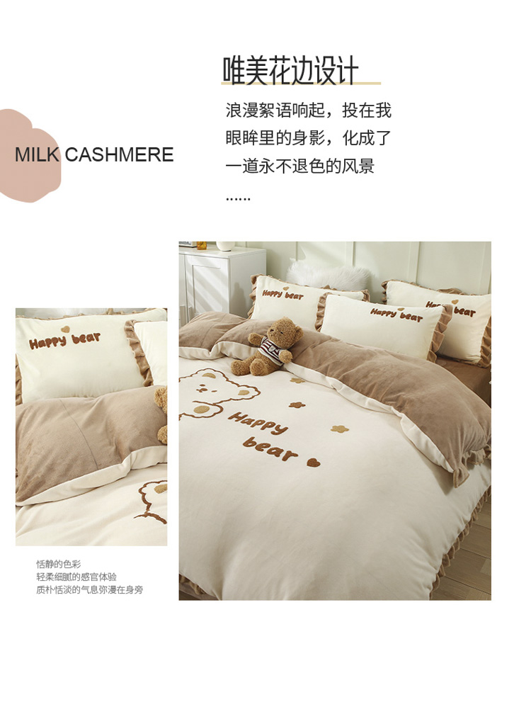 商品名称:沐辰 2021新款韩版毛巾绣加厚牛奶绒四件套 快乐小熊-米白