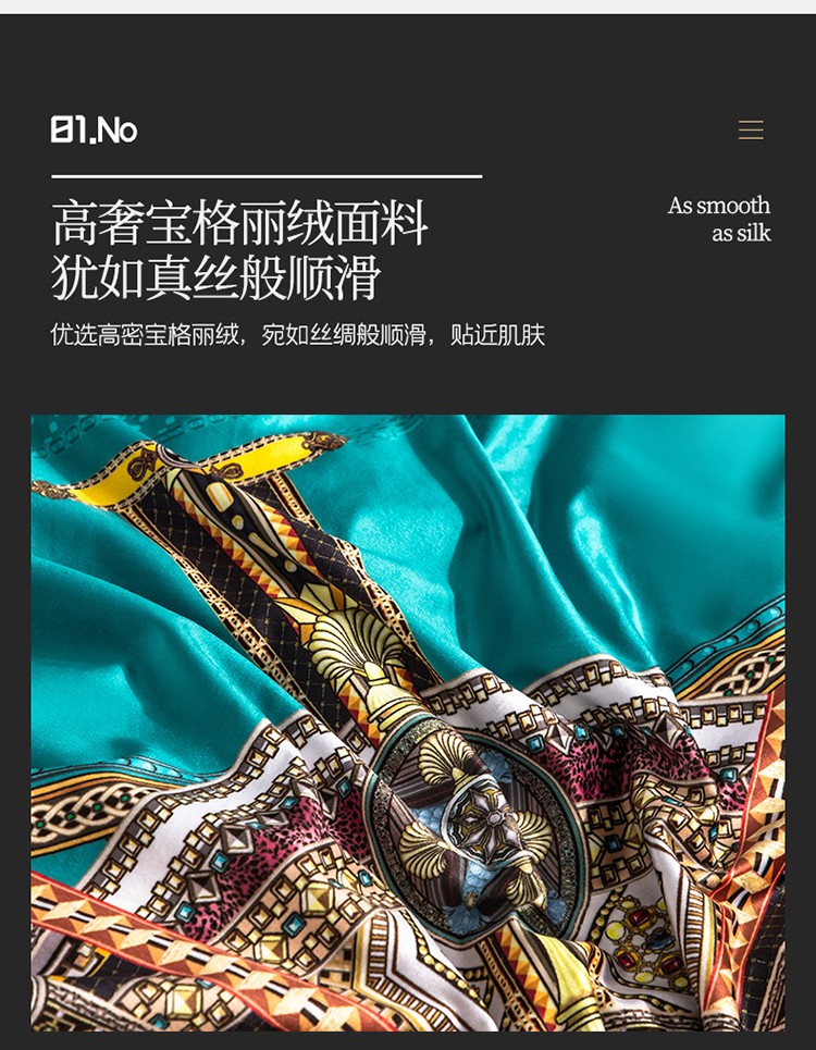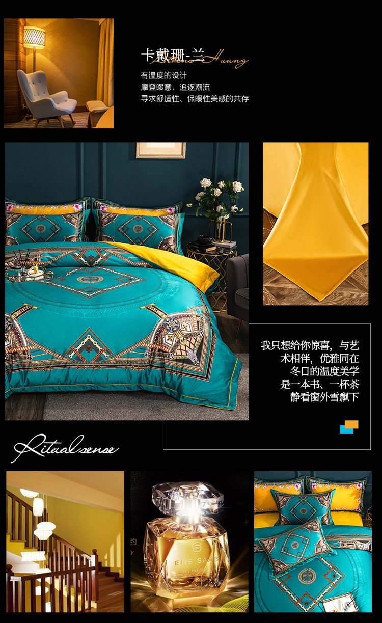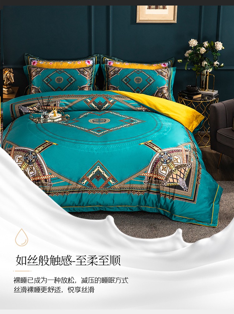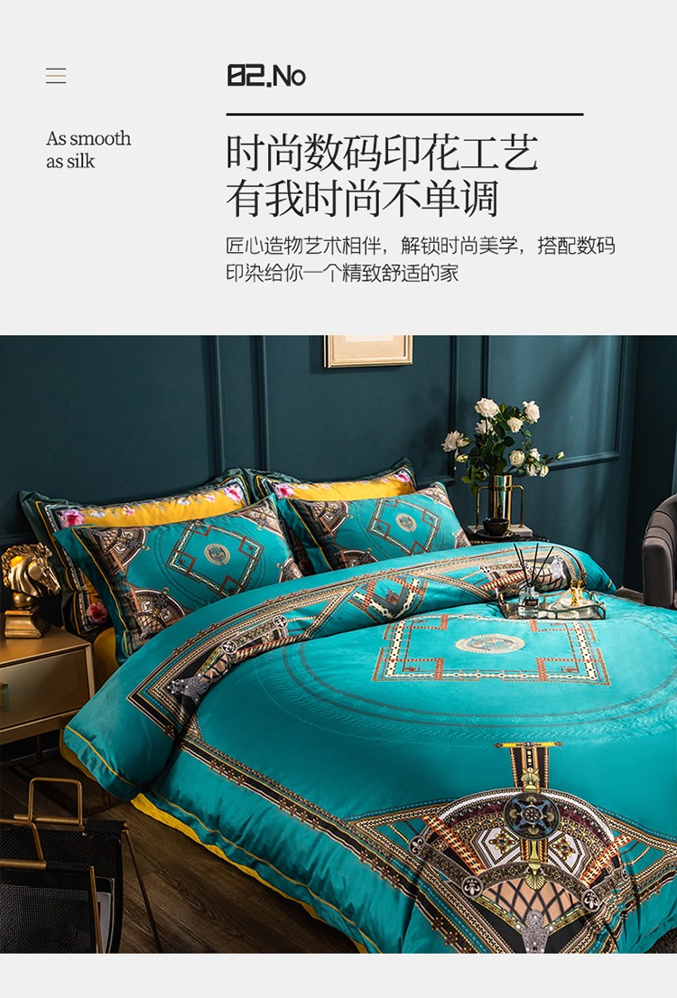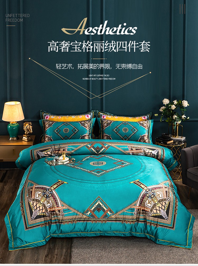 商品名称:青竹苑 2021新款真丝绒数码印花四件套 卡戴珊-兰