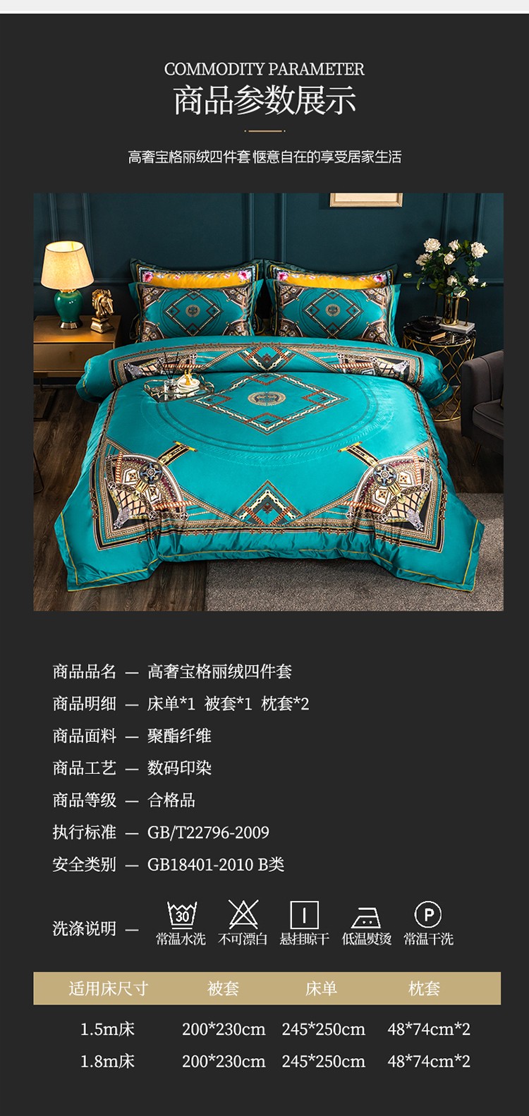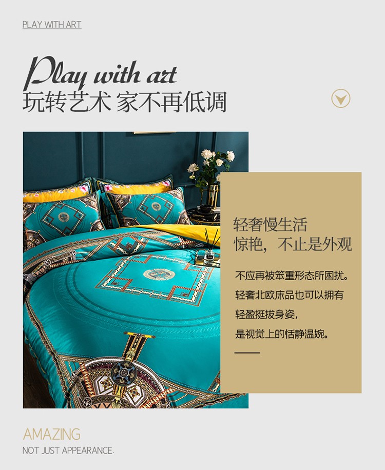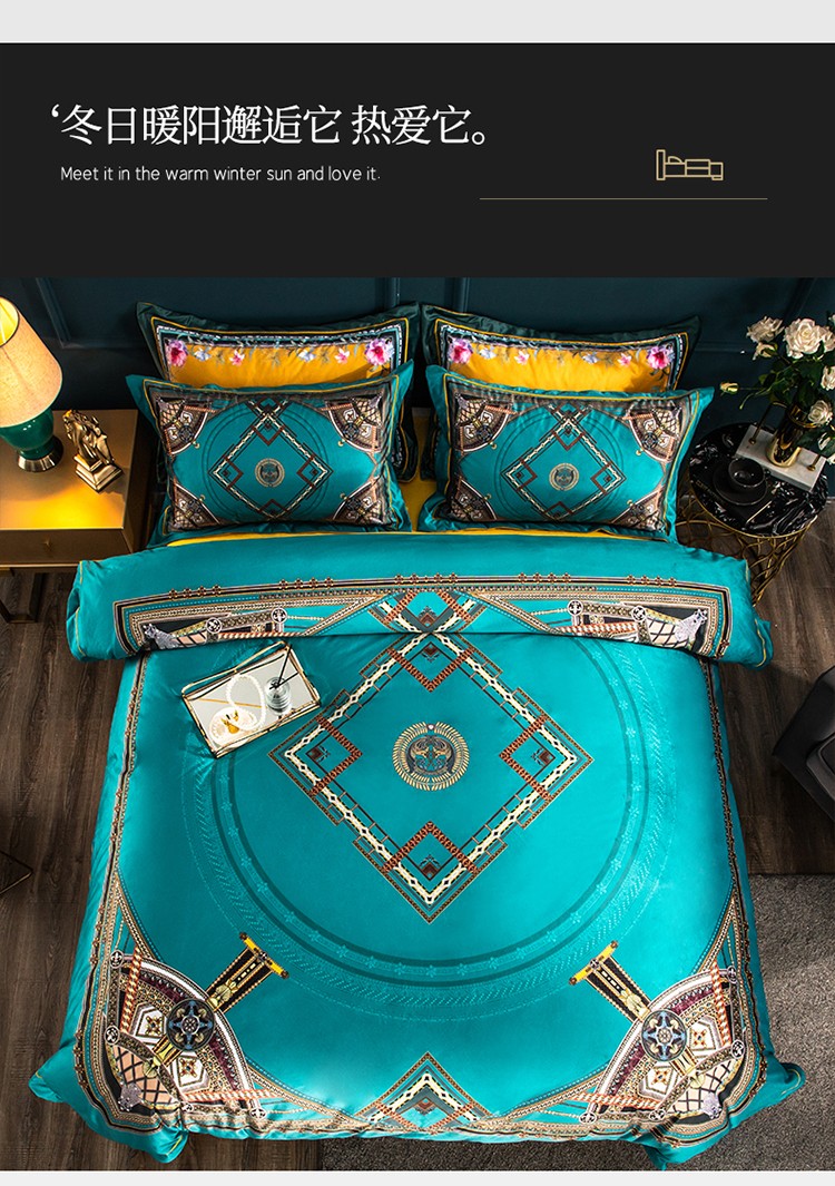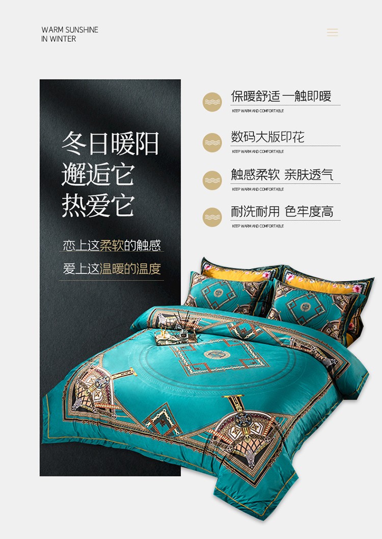 商品名称:青竹苑 2021新款真丝绒数码印花四件套 卡戴珊-兰