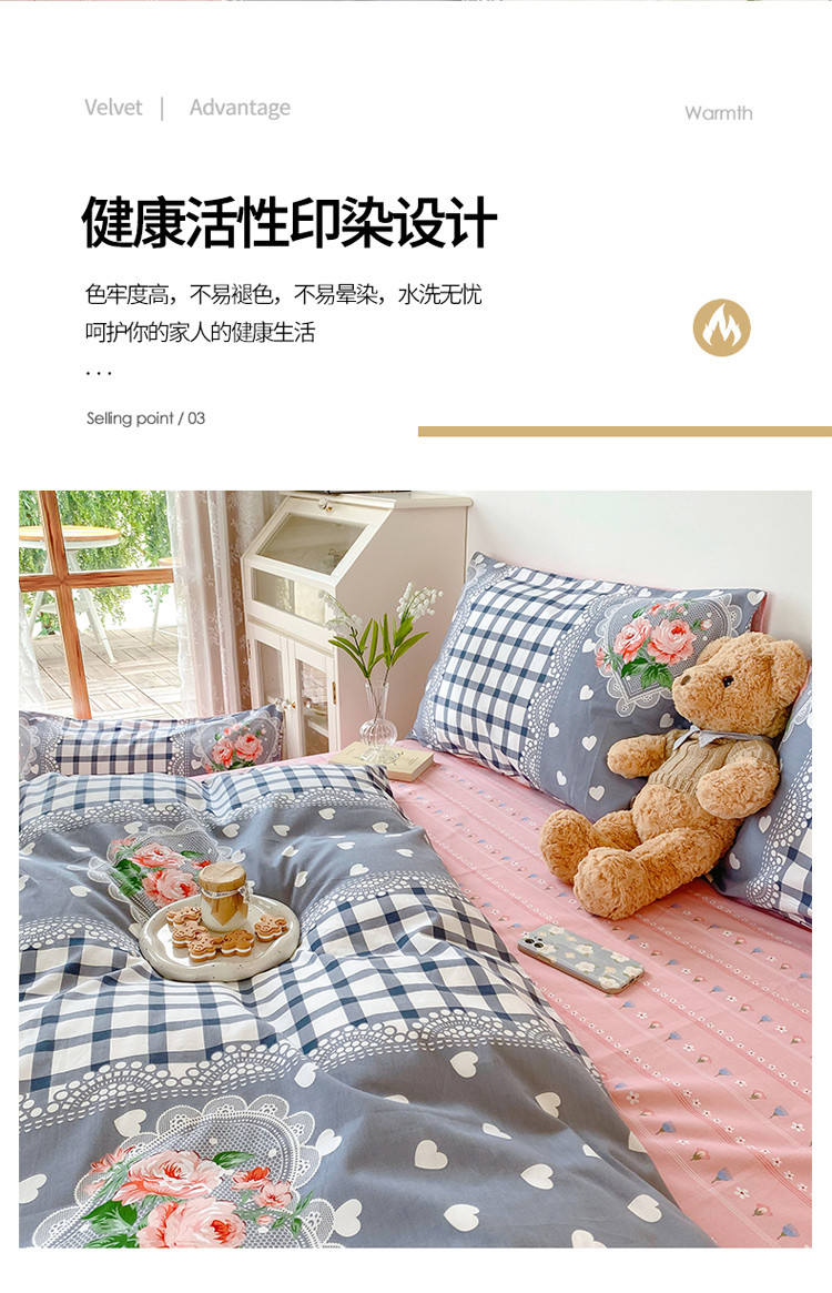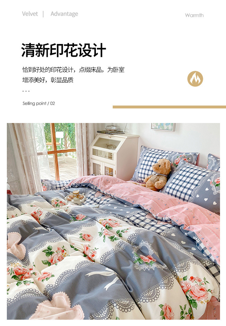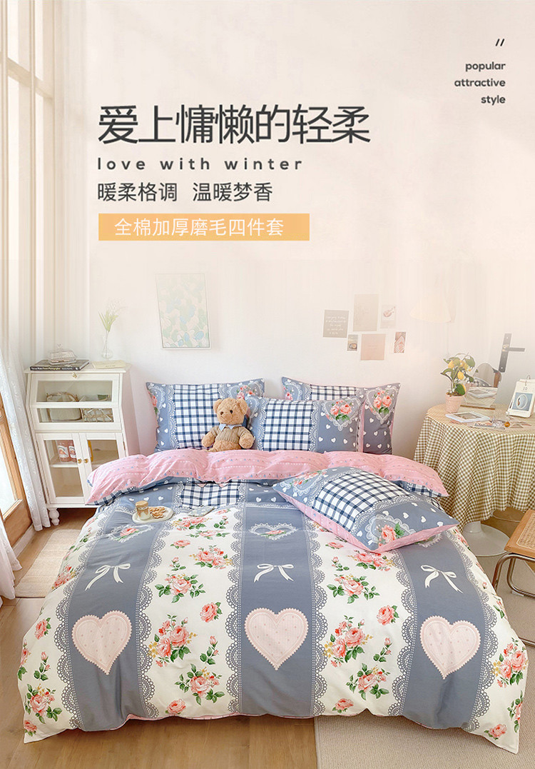 田野 2021冬季新款加厚全棉磨毛四件套 安娜