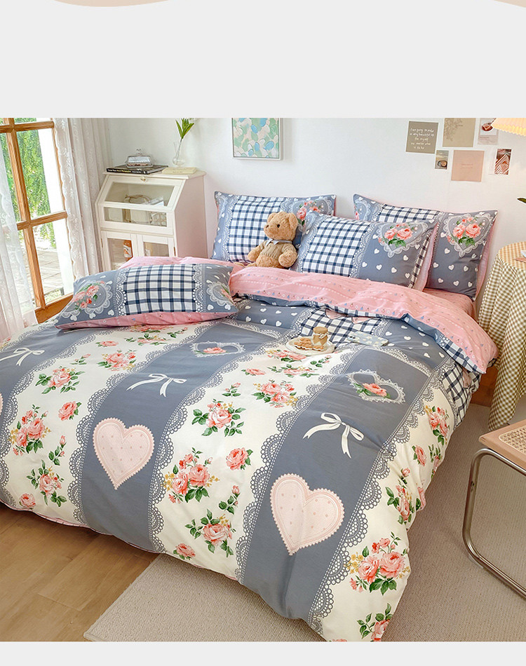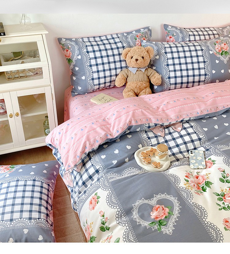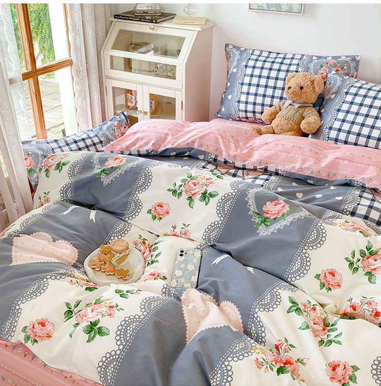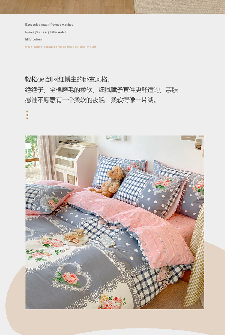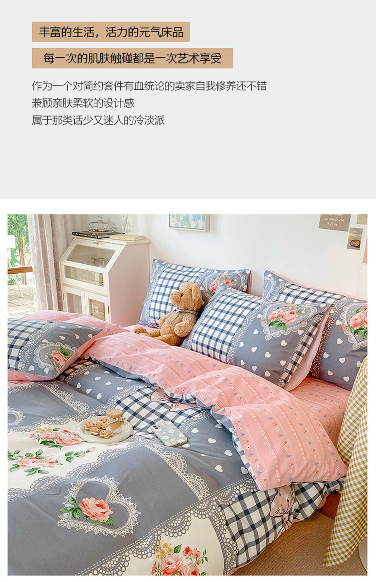 (总)田野 2022新款水洗棉小清新小碎花全棉四件套,花丛,花涧,绿婉,曼舞,桃夭,甜馨草莓,兔兔,银杏