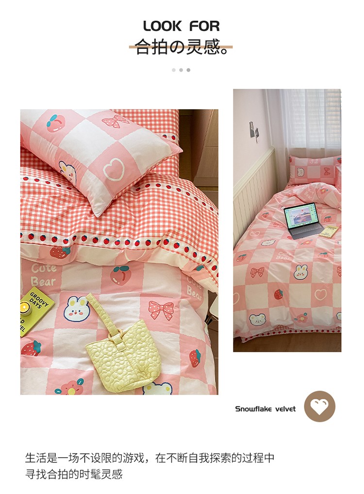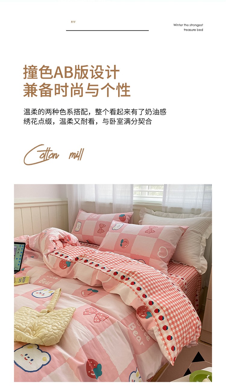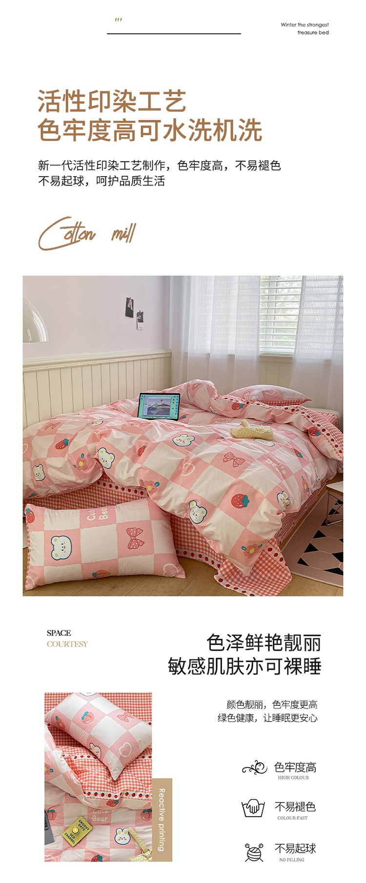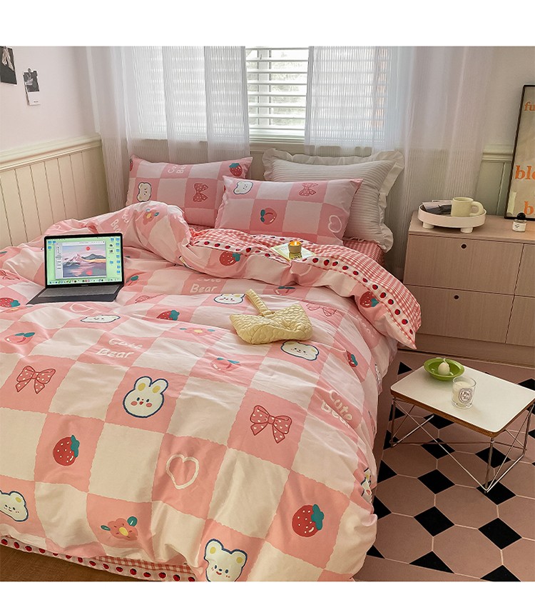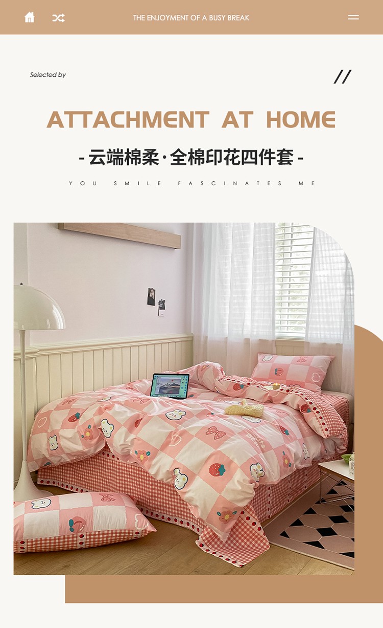 雅居纺家纺 2022新款13070全棉印花四件套 可爱小兔
