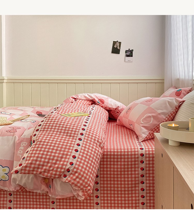 (总)雅居纺家纺 2022新款13070全棉印花四件套,草莓蝴蝶结,俄罗斯方块,黑白蝴蝶结,很嗨兔,可爱小兔,快乐花海,牛奶纹,胖胖鸭,棋盘格,日月争辉,西部恐龙,小情调,小桃桃