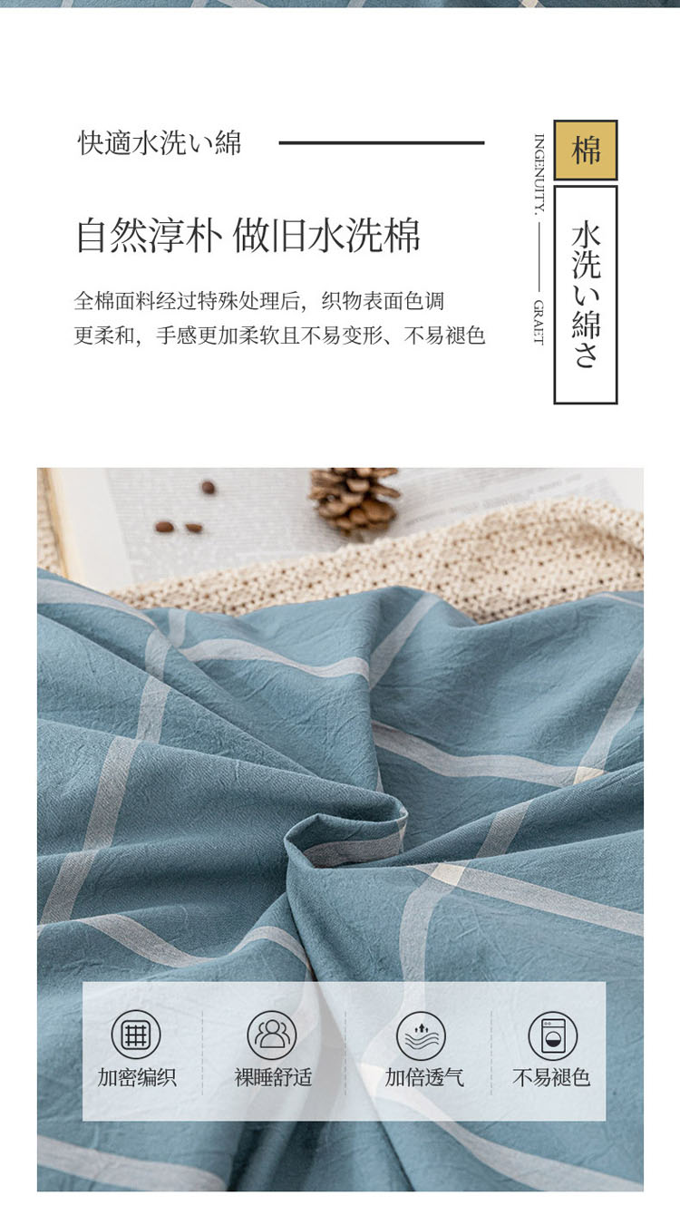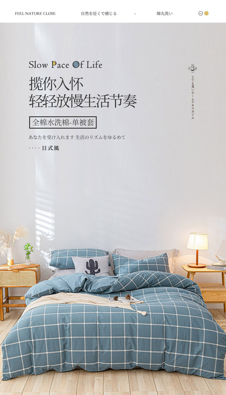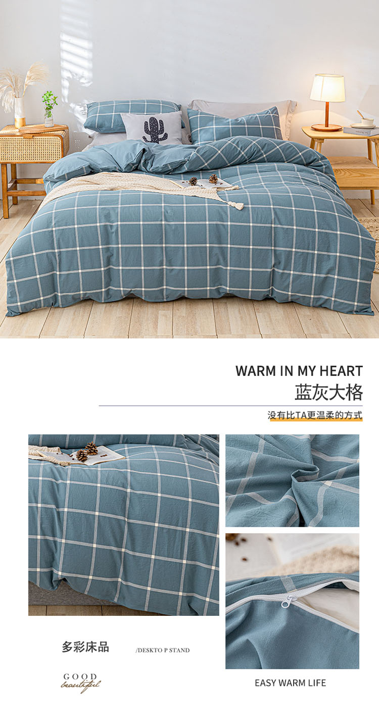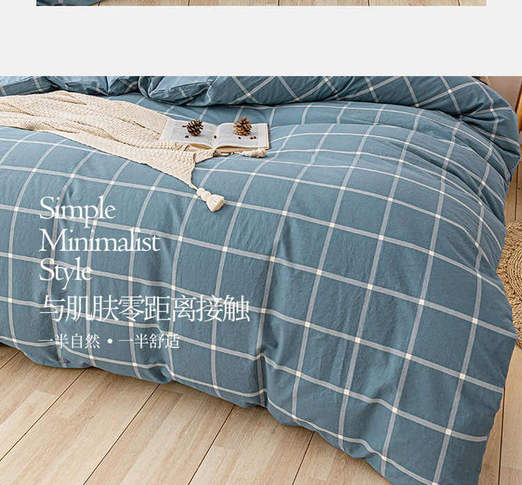 商品名称:蓝巢 2021新款全棉色织水洗棉单被套 蓝灰大格