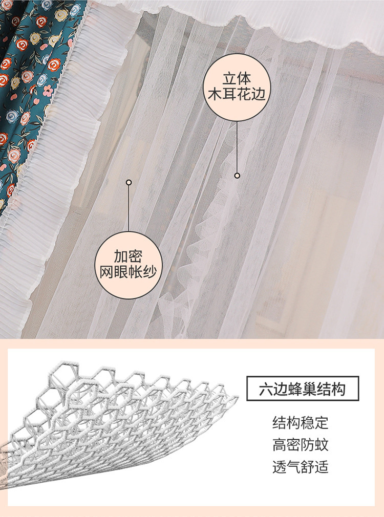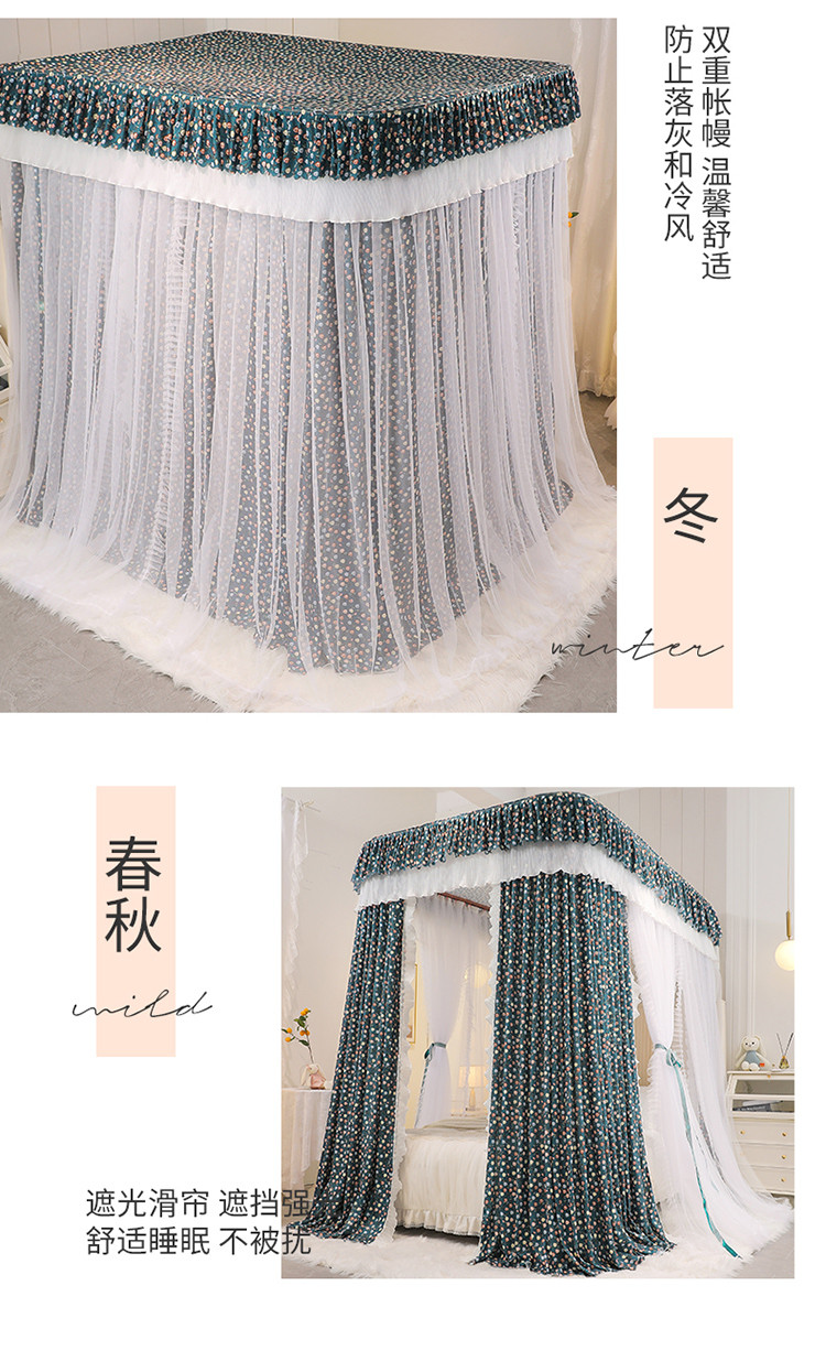 (总)艾晶美家纺有限公司 2025新款新中风双层双杆5面遮光落地宫廷蚊帐,粉枝花影,寒梅映阁,花簇橘裳,兰枝映月,云纱梦境,竹韵绕阁