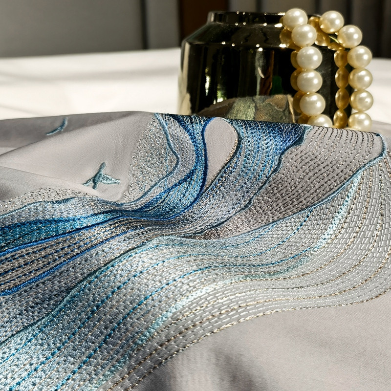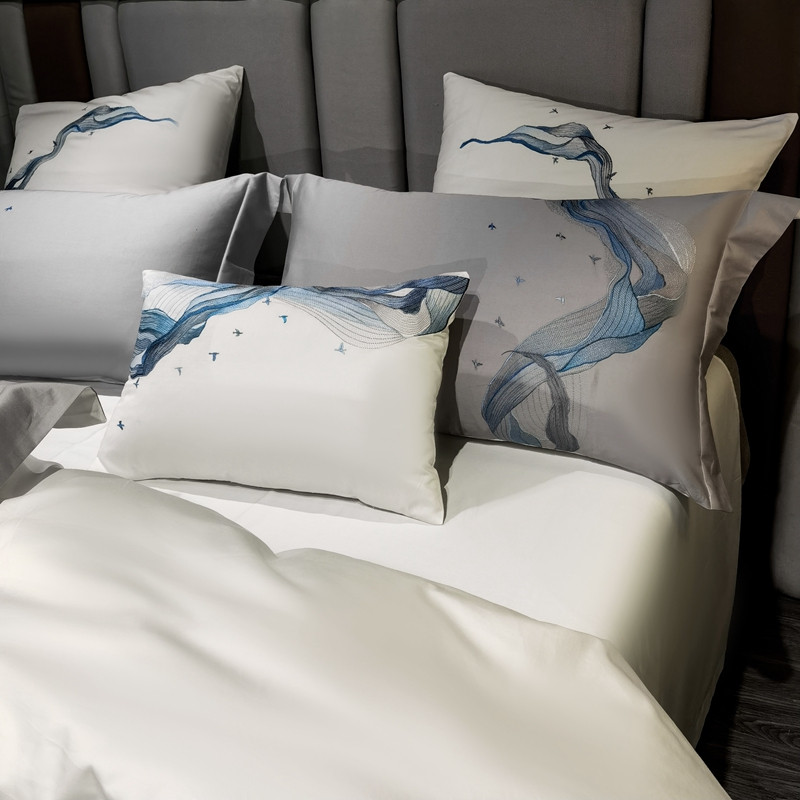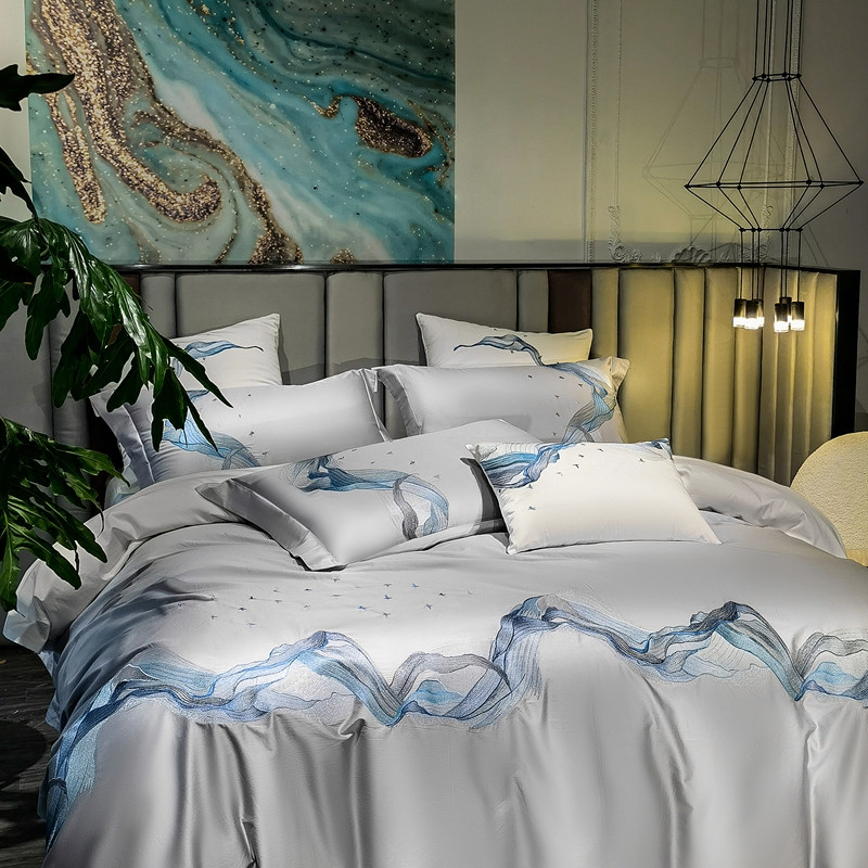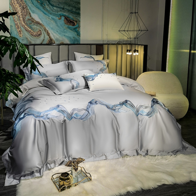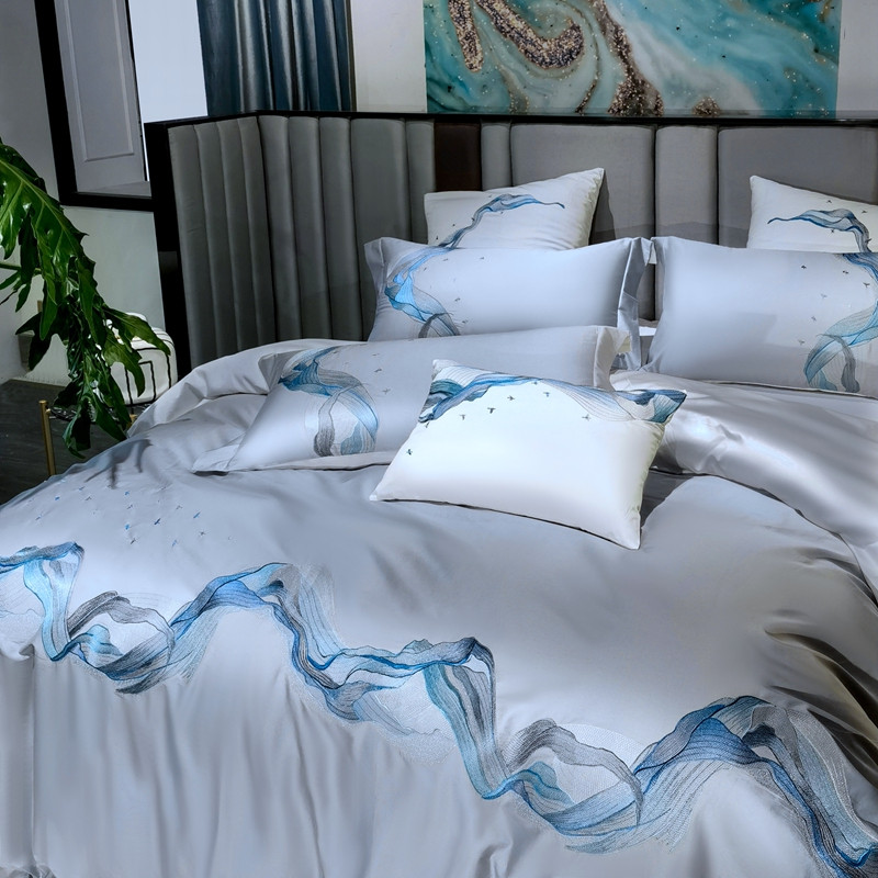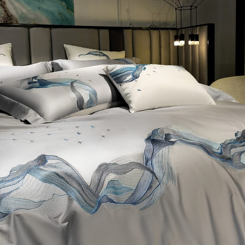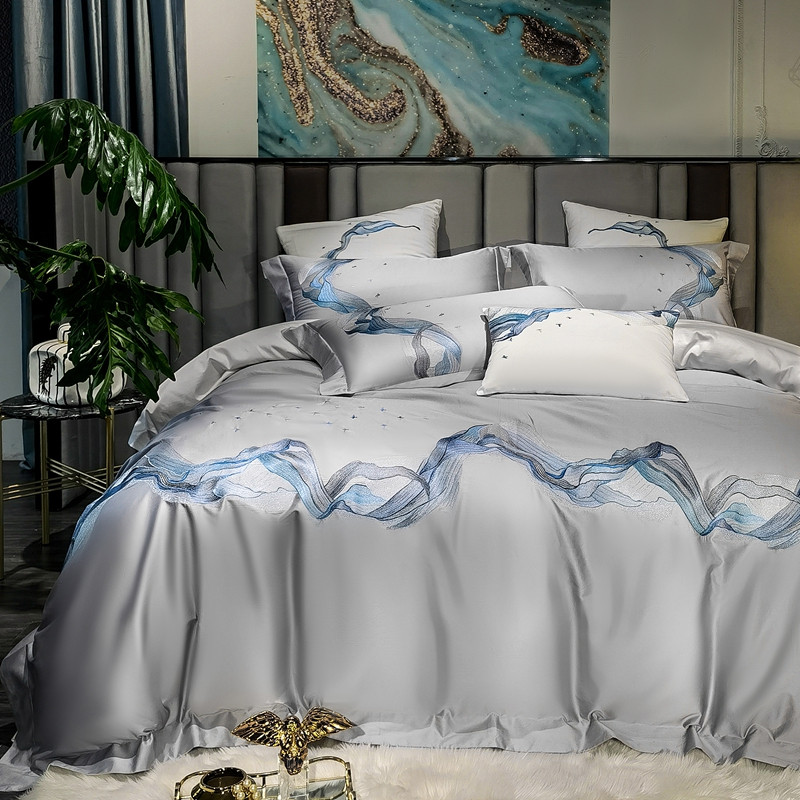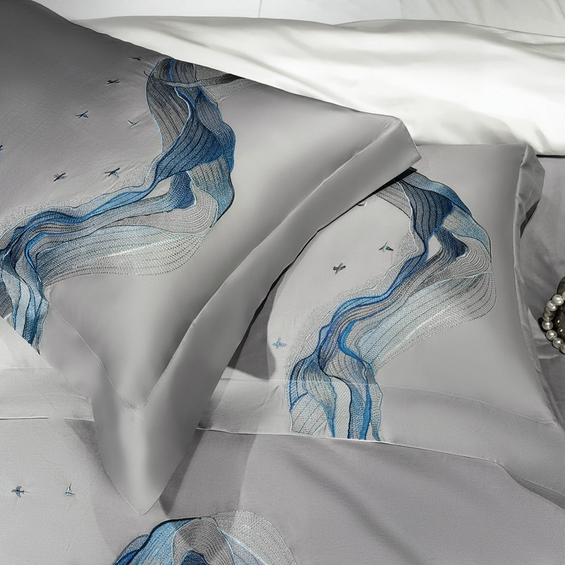 缔缦家纺 2022新款100s澳棉刺绣系列四件套-奥赛 奥赛 星河灰