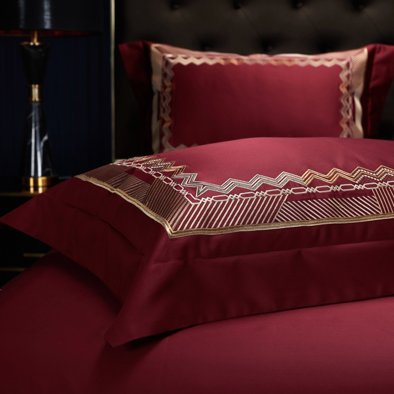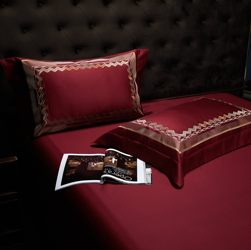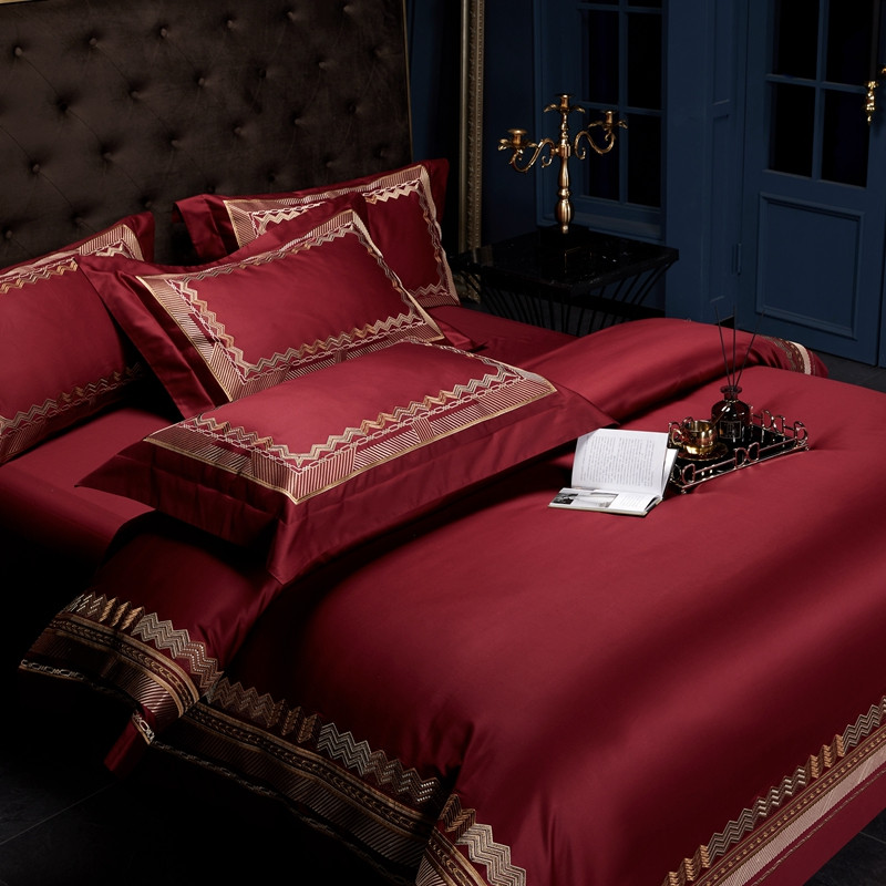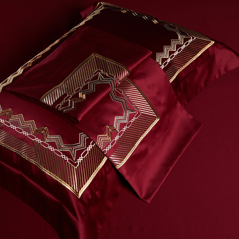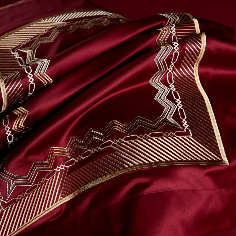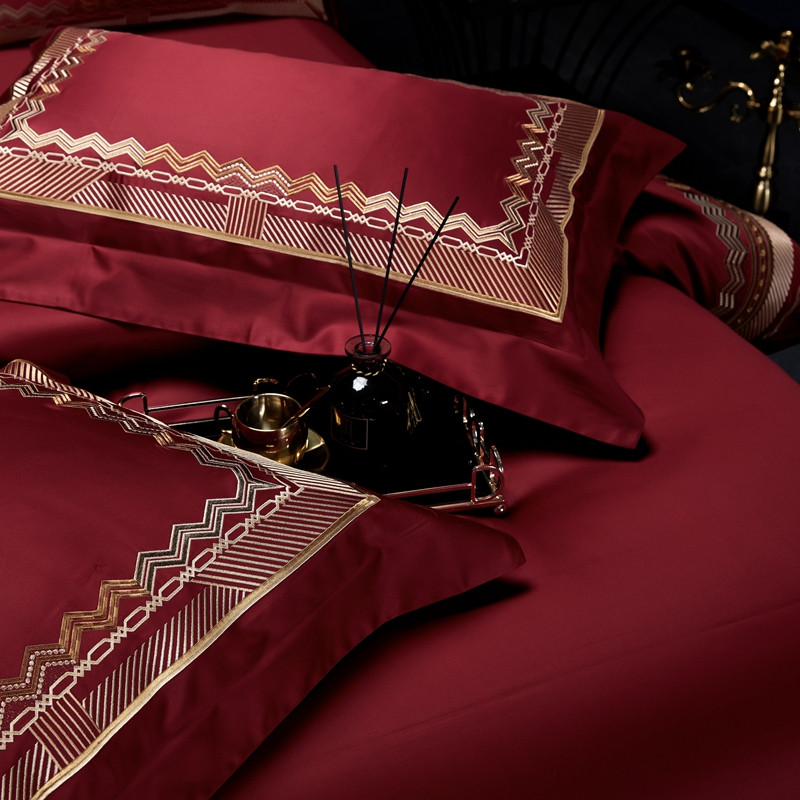 缔缦家纺 2022新款100s澳棉刺绣系列四件套-恋曲 酒红