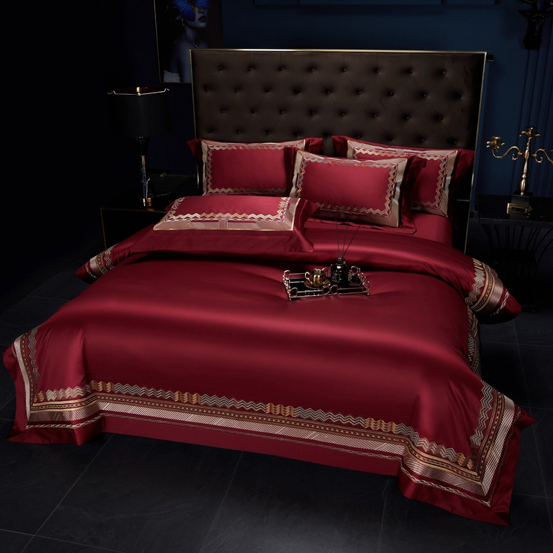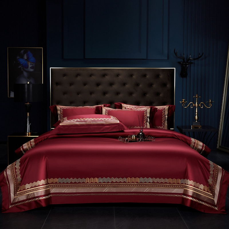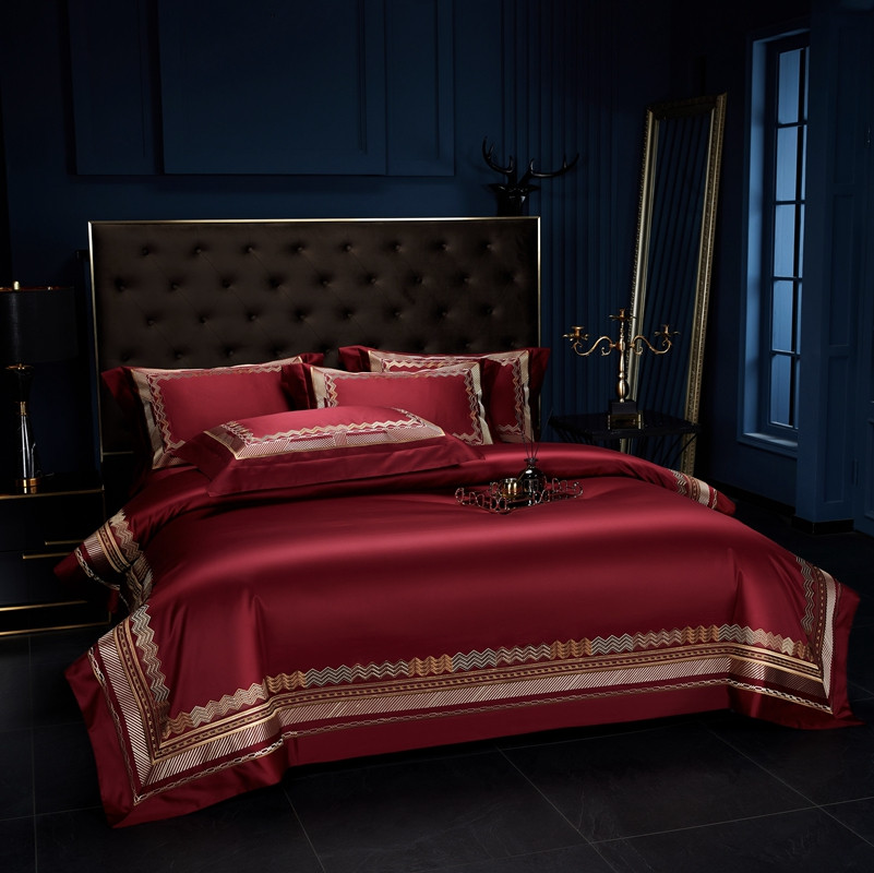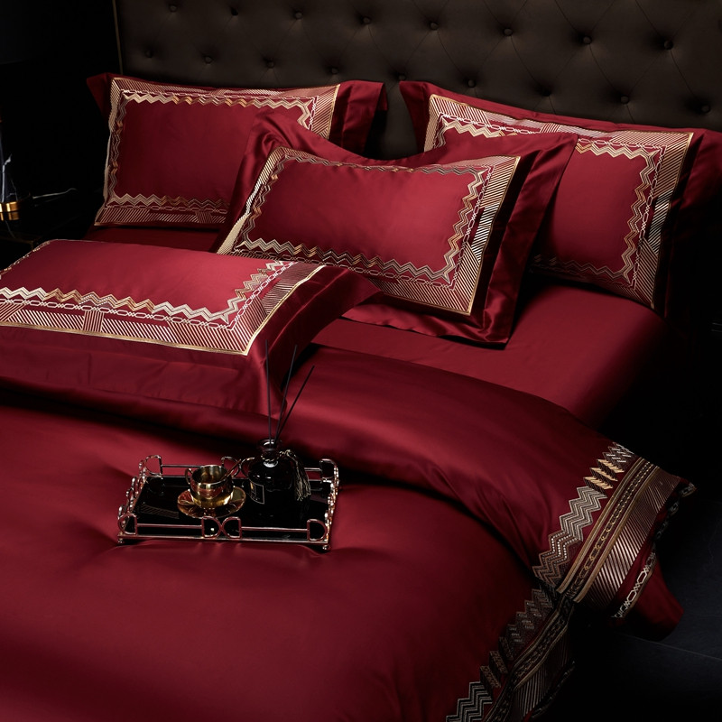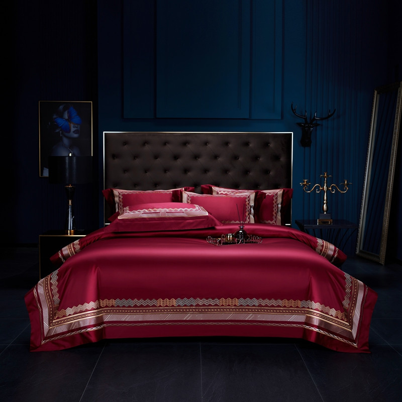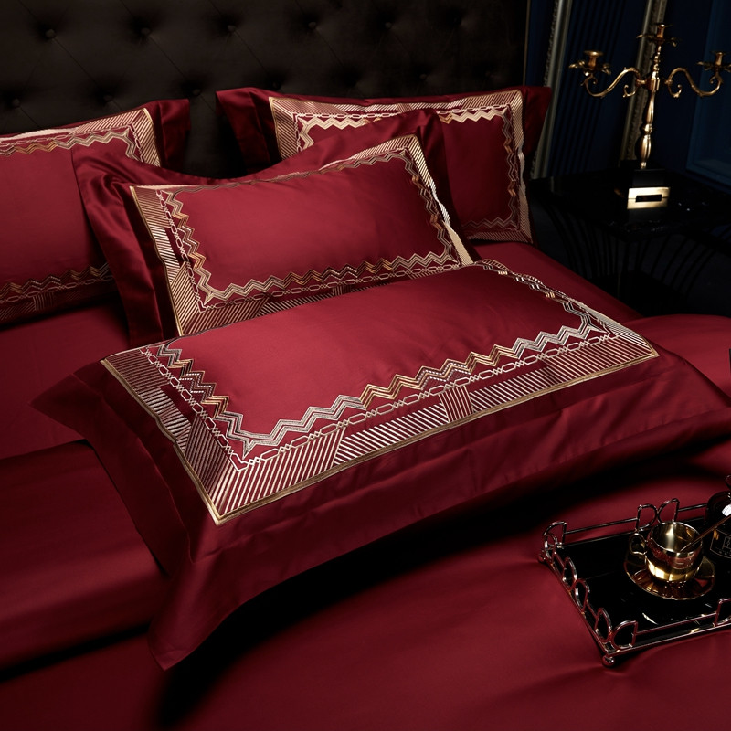 缔缦家纺 2022新款100s澳棉刺绣系列四件套-恋曲 酒红