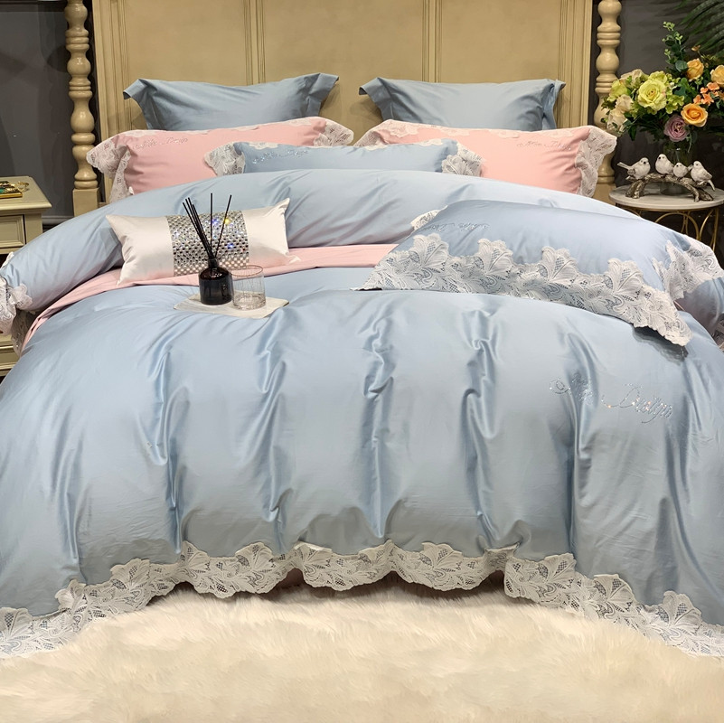 总 缔缦家纺 2022新款100支长绒棉蕾丝系列四件套-莎桦