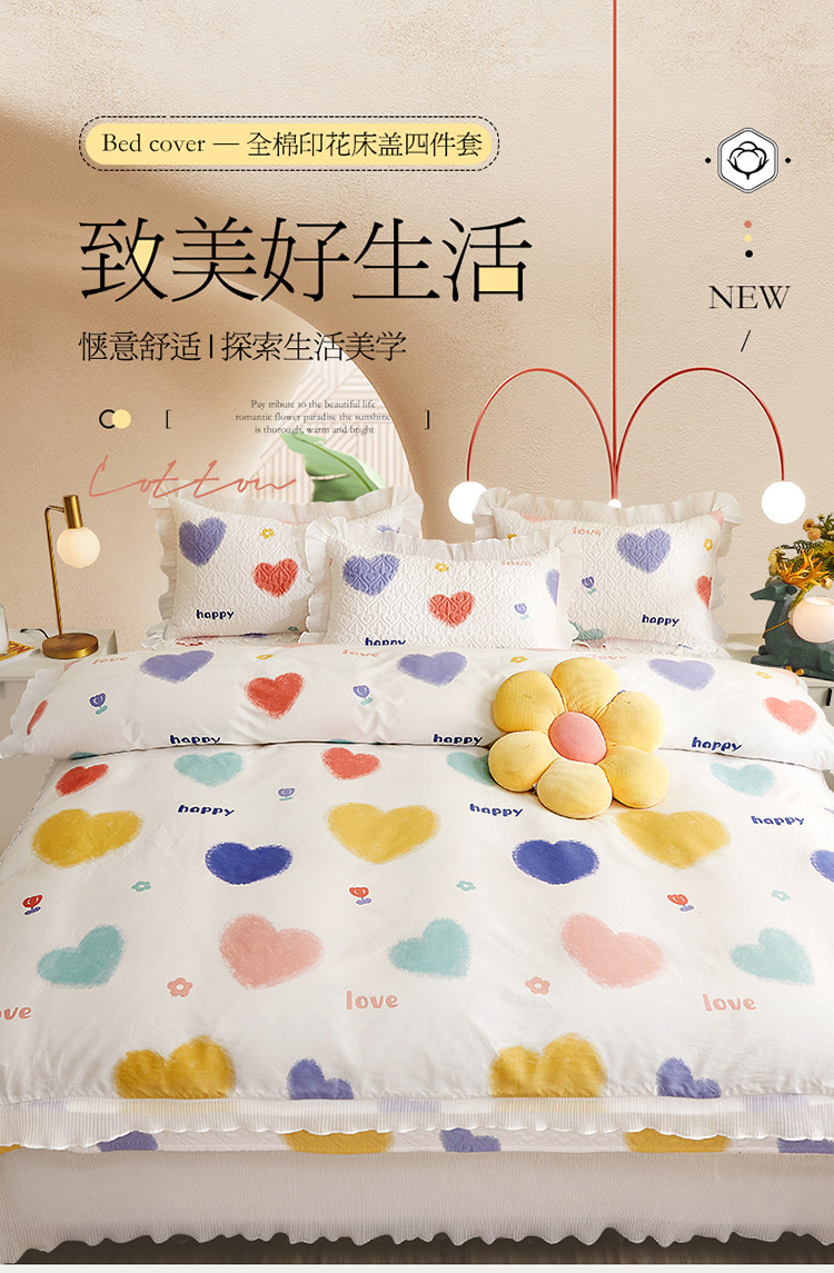 宜凡家纺 2022新款全棉床盖四件套 七彩童心